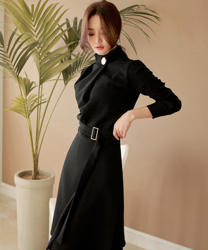 ロングドレス ドレス ワンピース 二次会 忘年会 新年会 長袖 フリル 韓国 XY2-ZED88953GT525