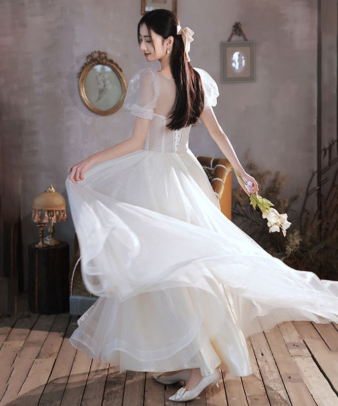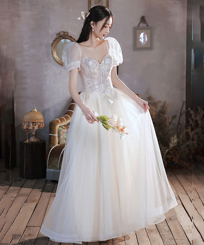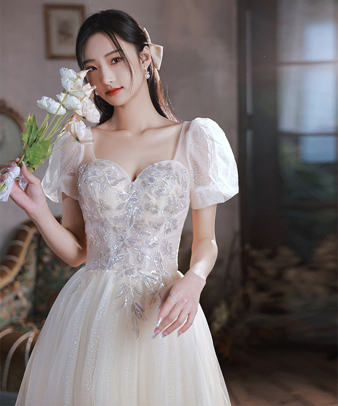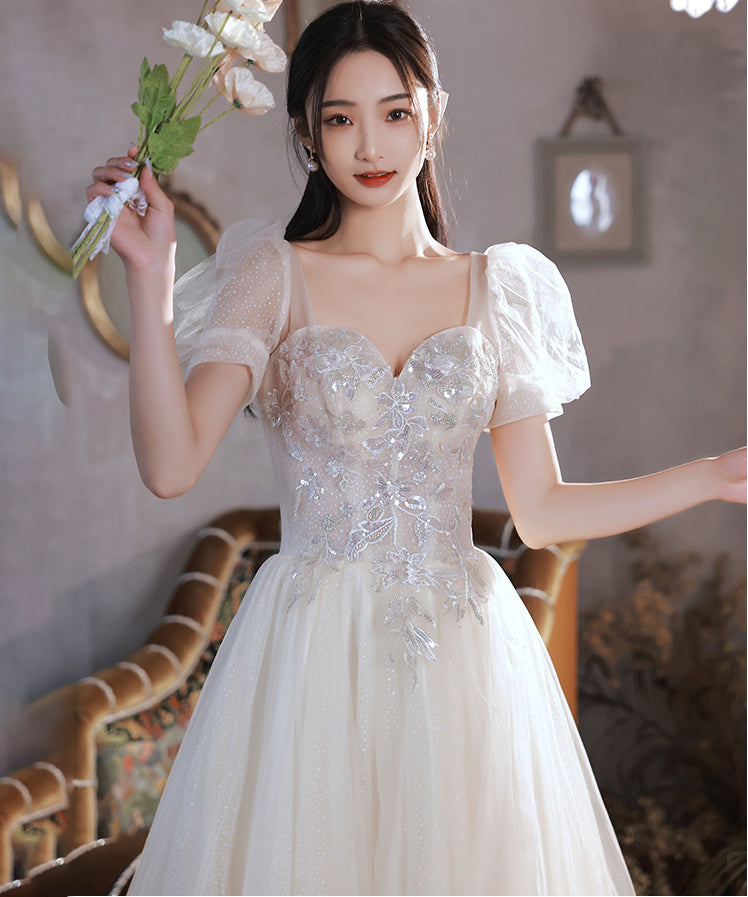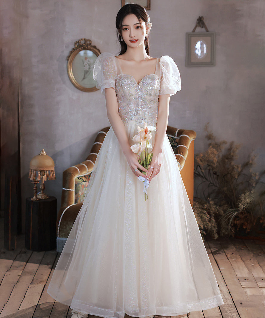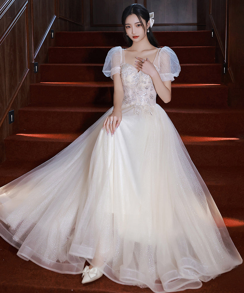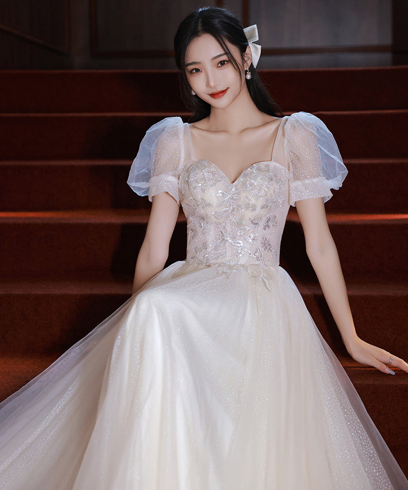 ロングドレス ナイトドレス パフスリーブ カラードレス 高級感 ウェディングドレス 宴会 演奏会 XH2-MBYD-3.22