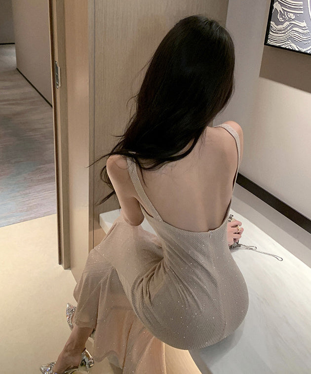 ロングドレス フリル キャバドレス エレガント キラキラ 着痩せ セクシー YH2-DD6604