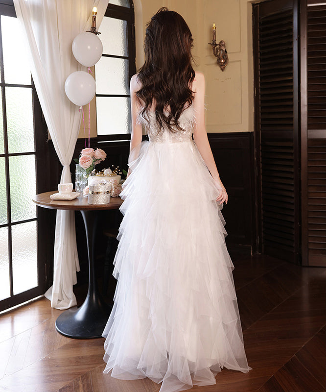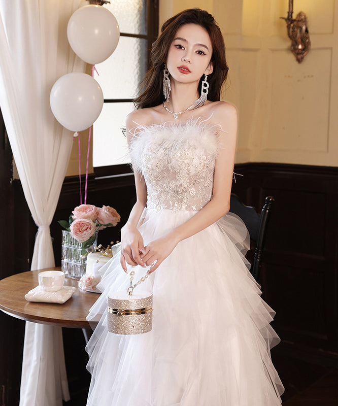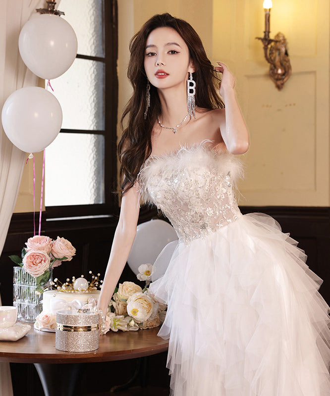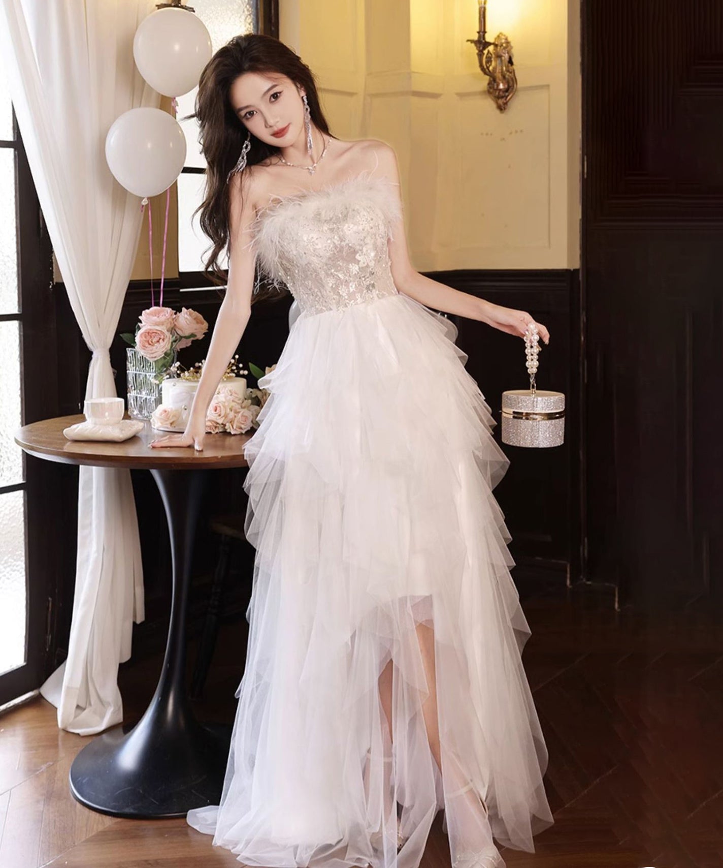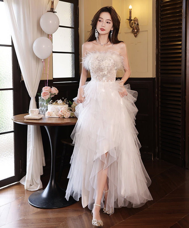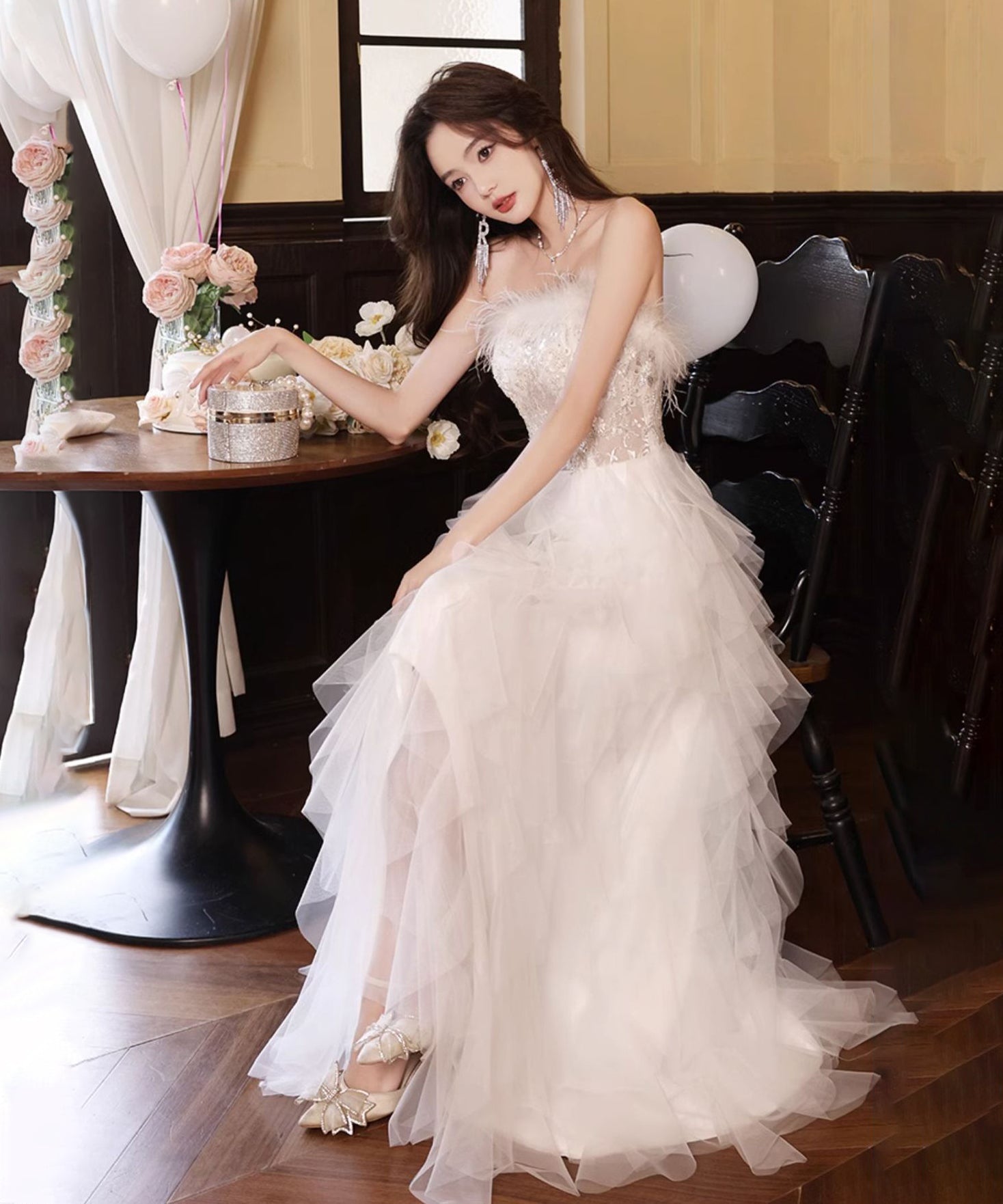 ロングドレス ベアトップふわふわ 刺繍 カラードレス 高級感 ウェディングドレス 宴会 演奏会 XH2-MBYD-ltao731899852919