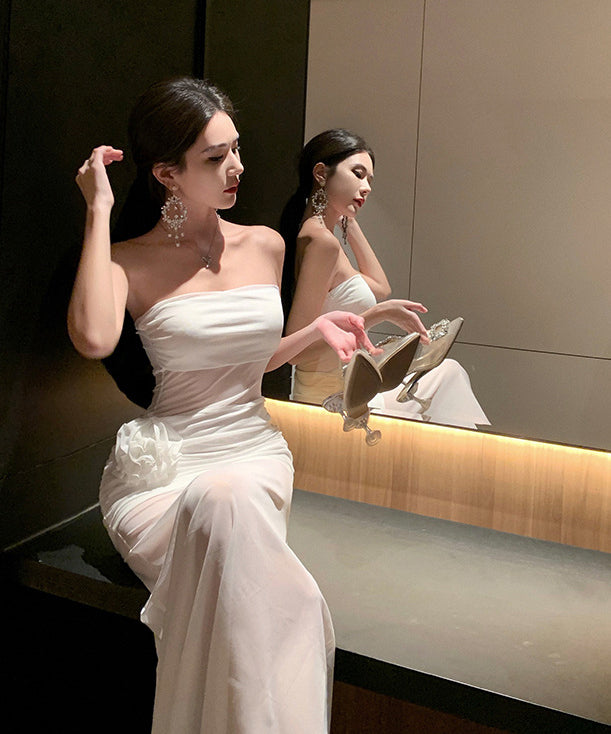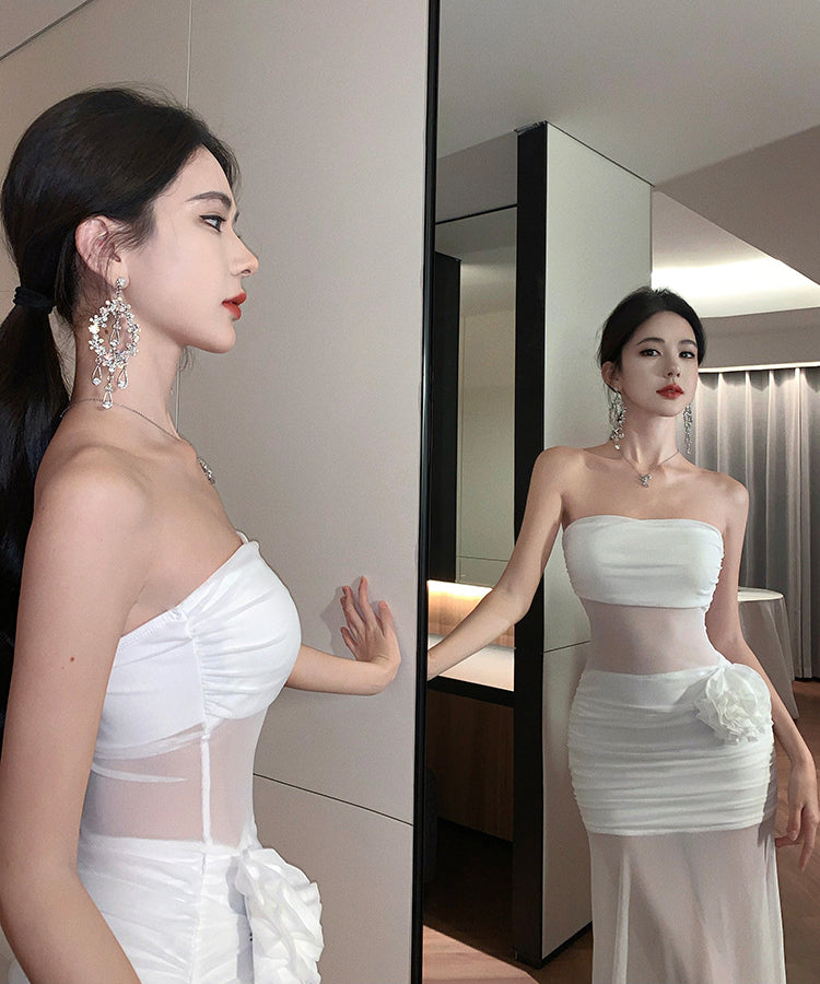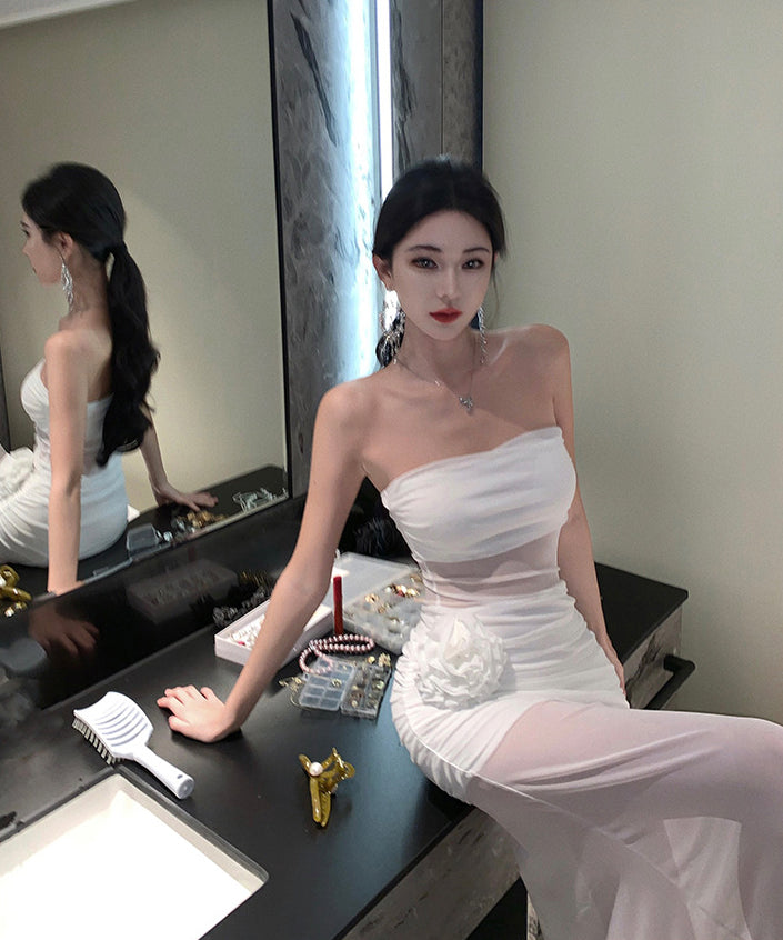 ロングドレス ベアトップ カワセクシー チュール 透明感 フラワー キャバクラ パーティー XH2-CD3-245-89770520