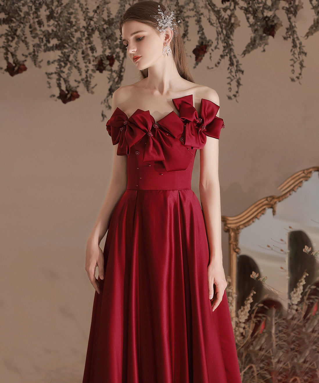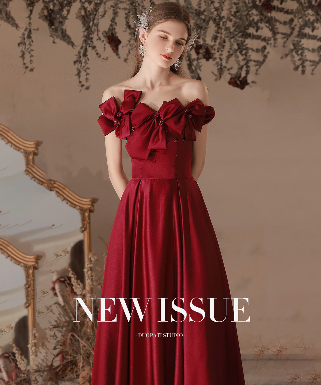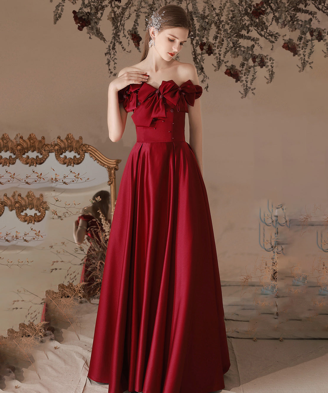 ロングドレス ベアトップ フラワー カラードレス 高級感 ウェディングドレス 宴会 演奏会 XH2-MBYD-6.1
