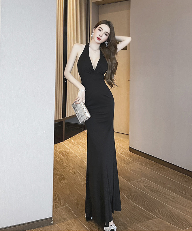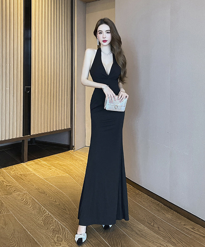ロングドレス ホルターネック 谷間見せ セクシー 宴会 ナイトドレス 背露出 XH2-YM9173