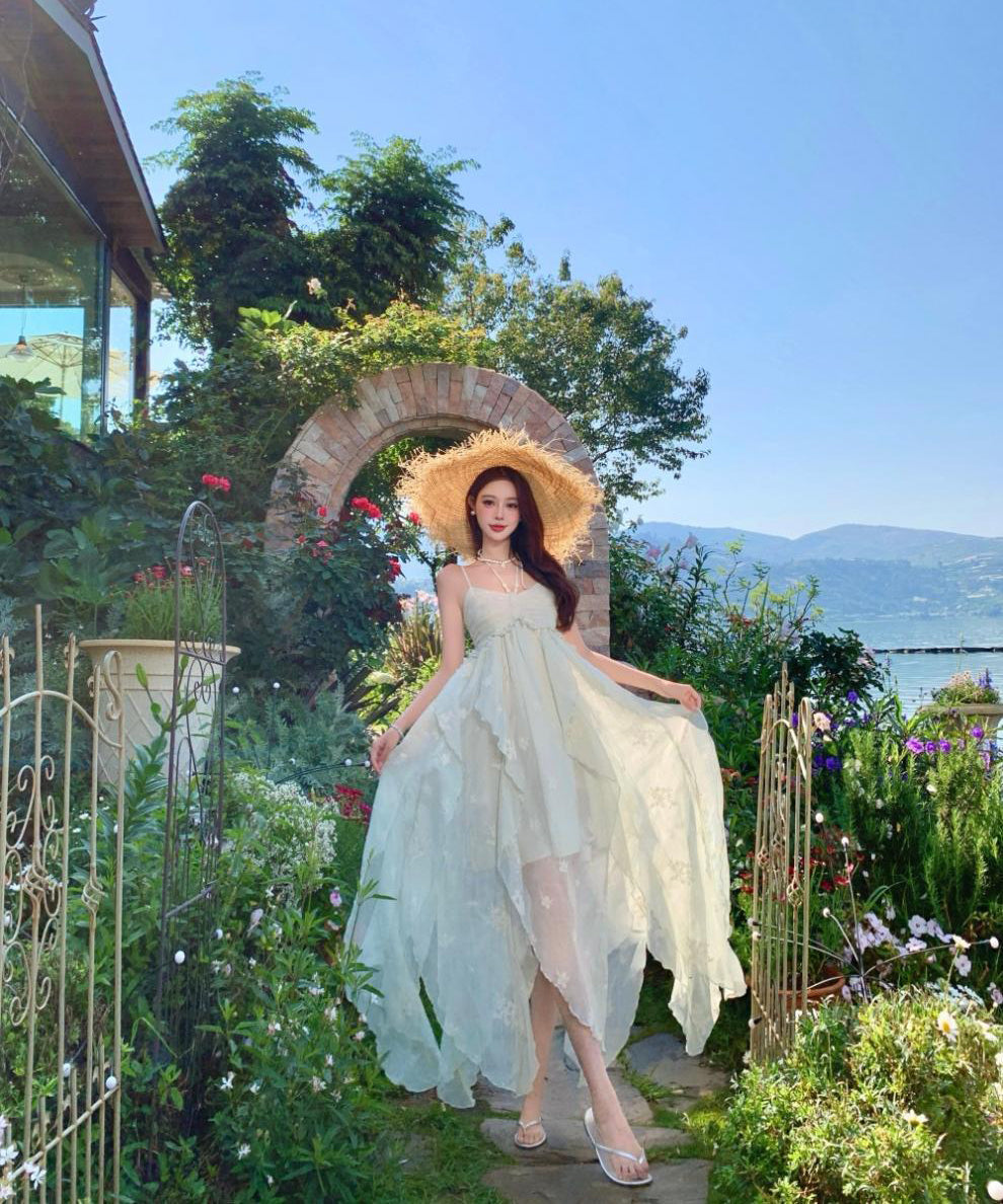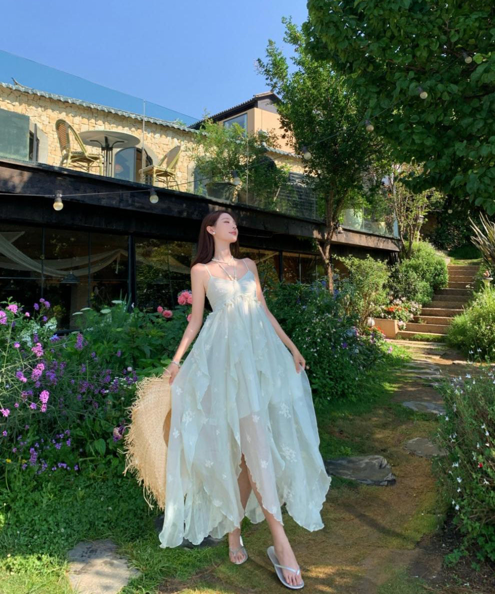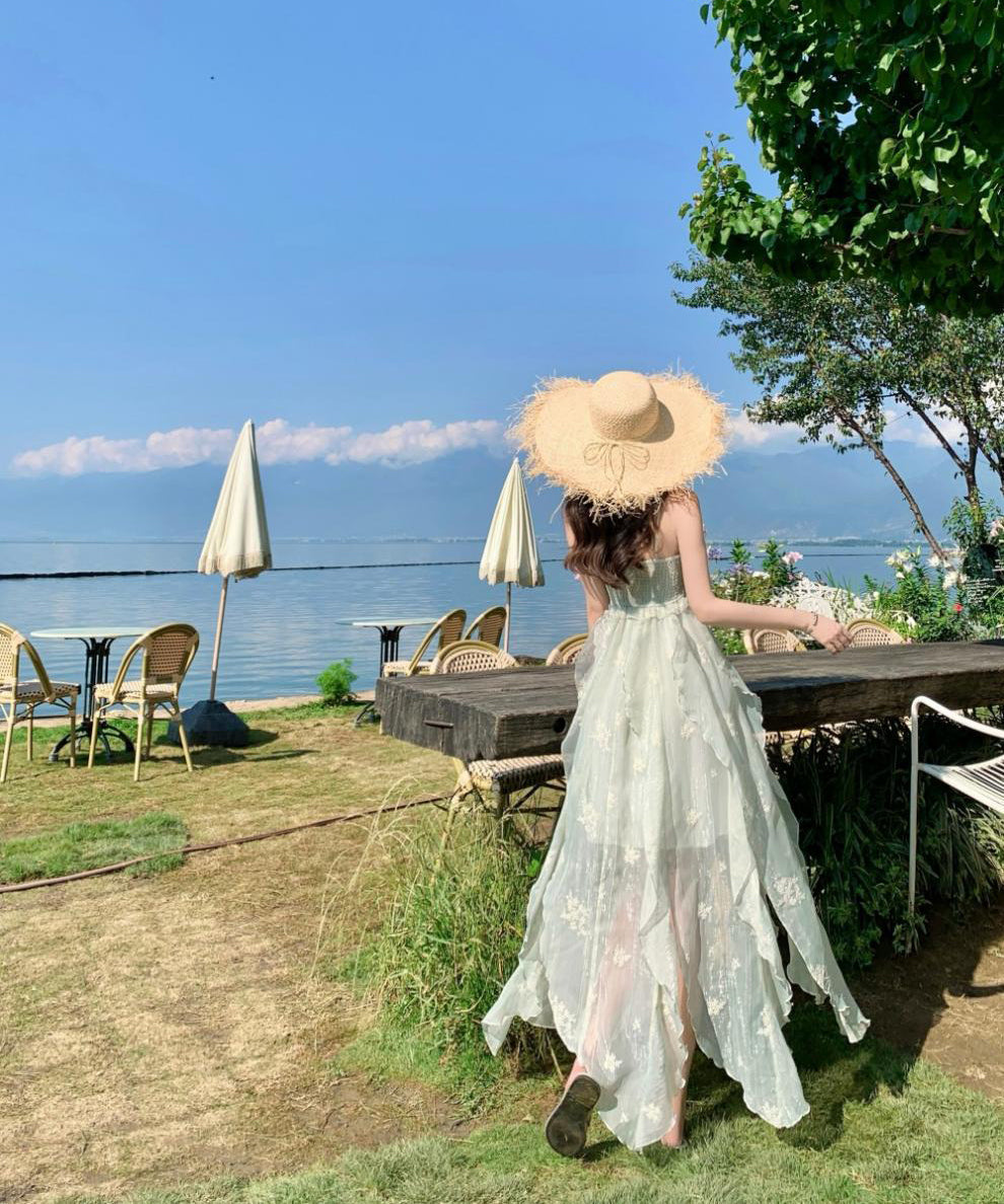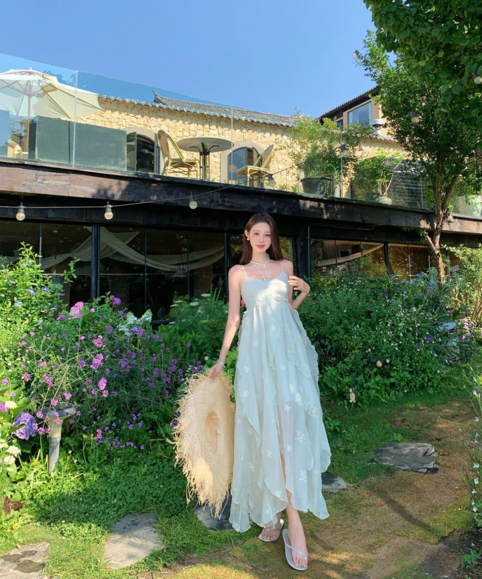 ロングドレス リゾートウェア ハーネスネック 花柄 フリル シフォン フレンチテイスト レトロ JC2-CD4-516-53040800