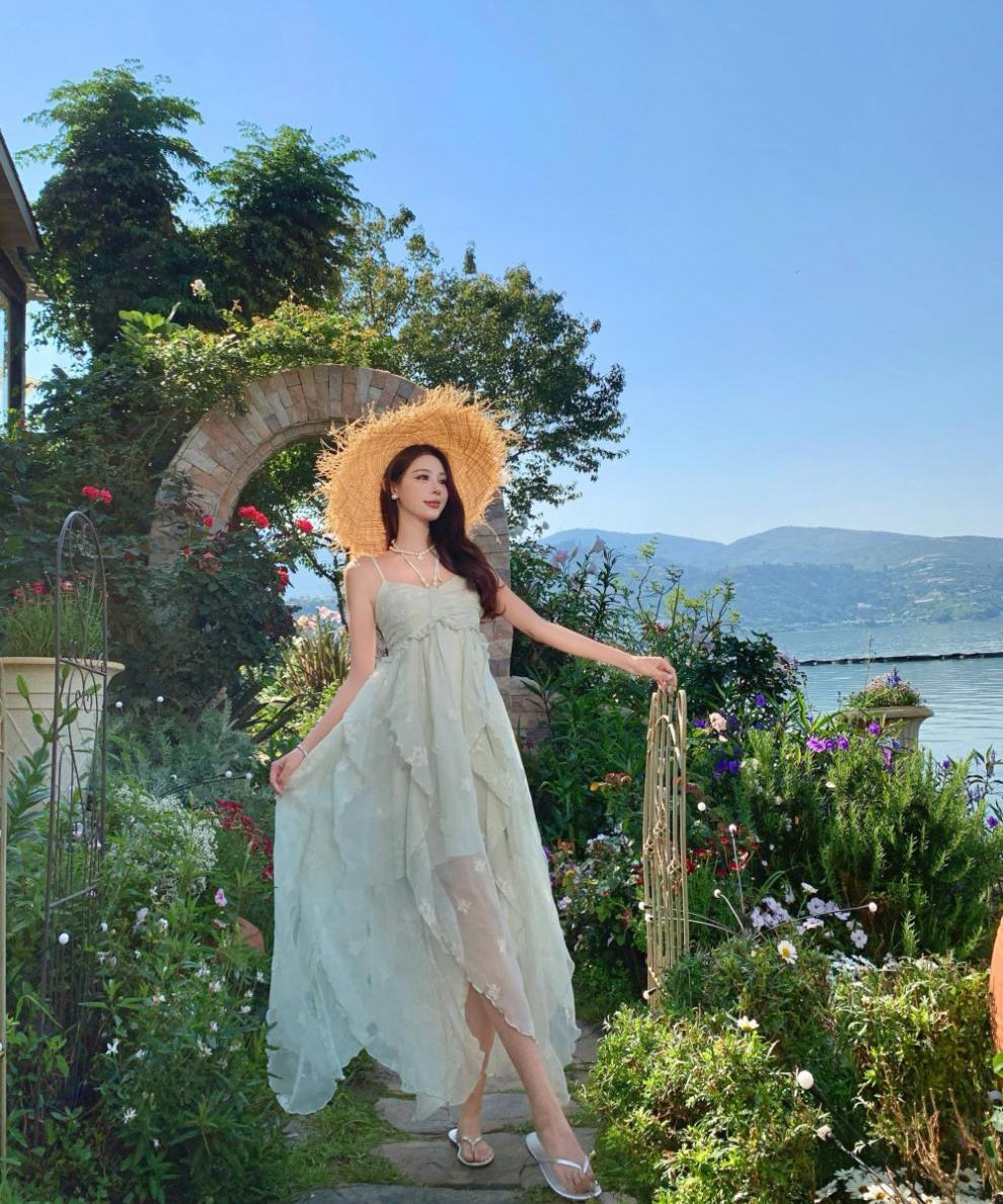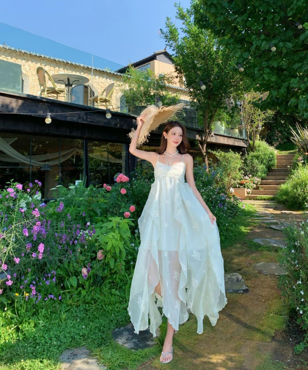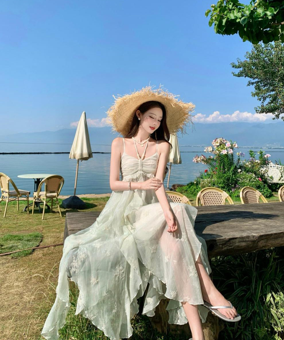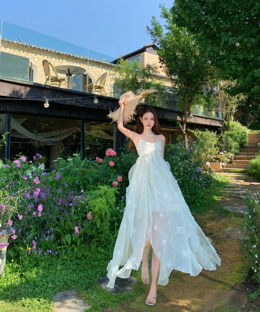 ロングドレス リゾートウェア ハーネスネック 花柄 フリル シフォン フレンチテイスト レトロ JC2-CD4-516-53040800