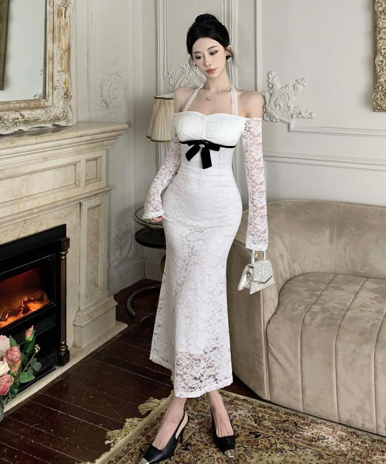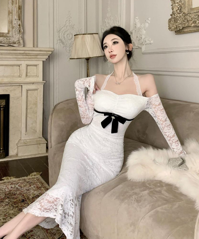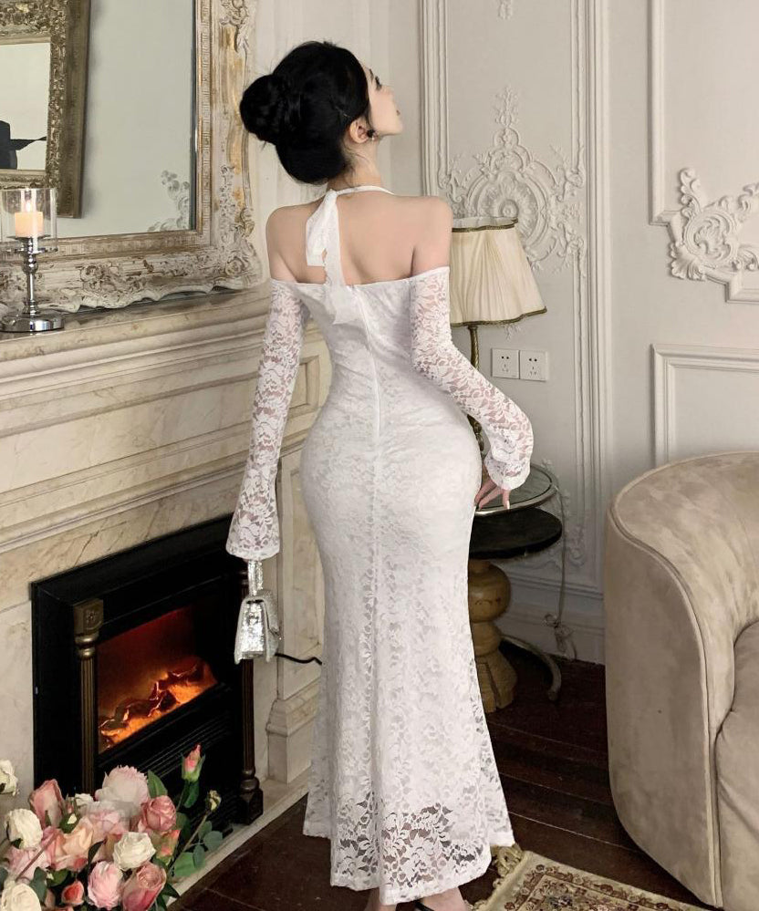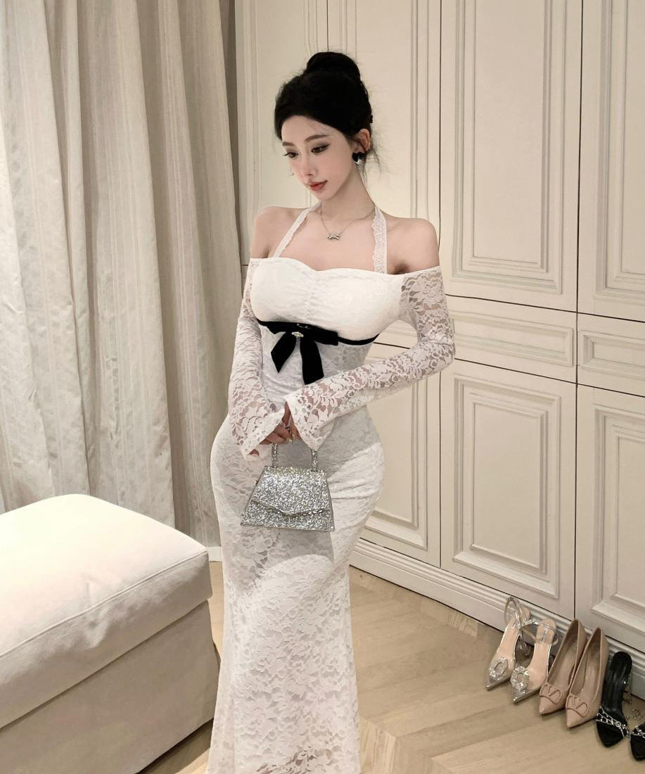 ロングドレス レース ホルターネック マーメイドドレス エレガント カワセクシー オフショルダーXH2-CD7-238-85950530