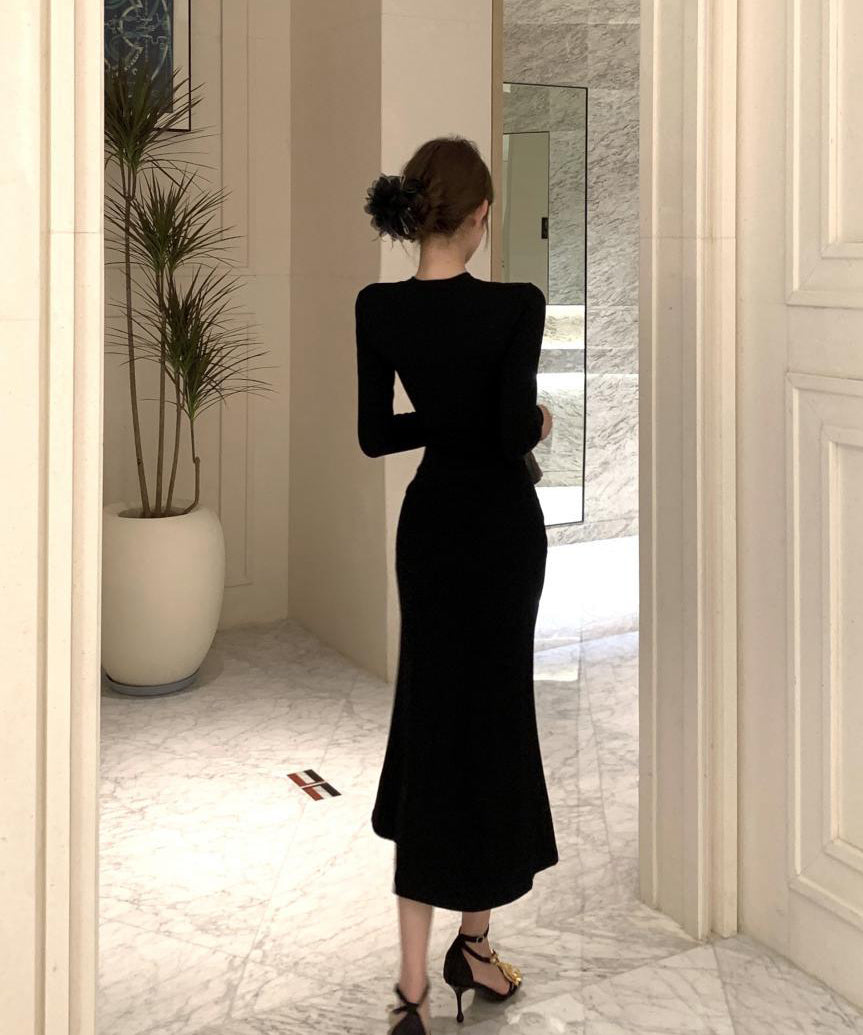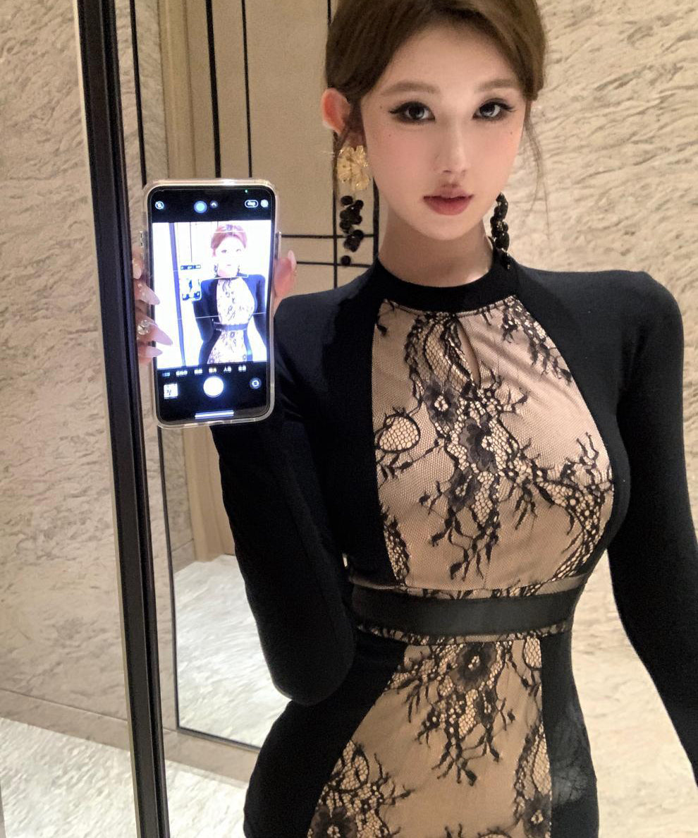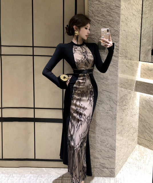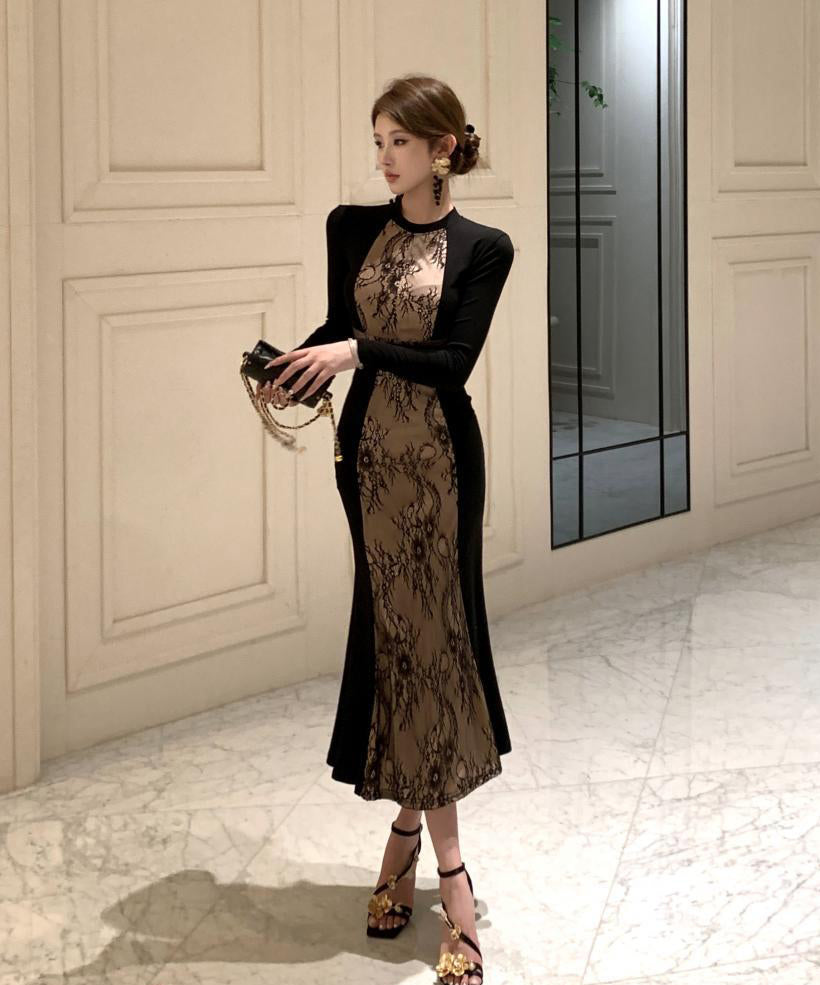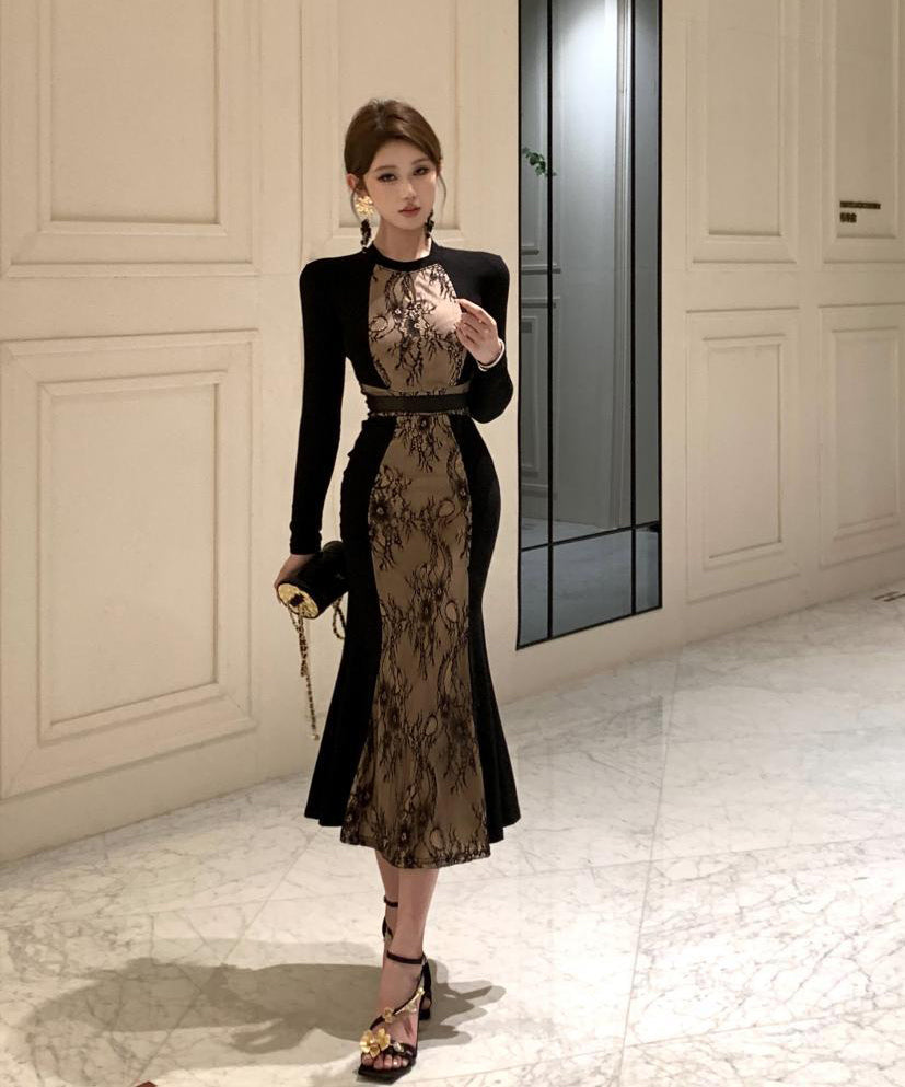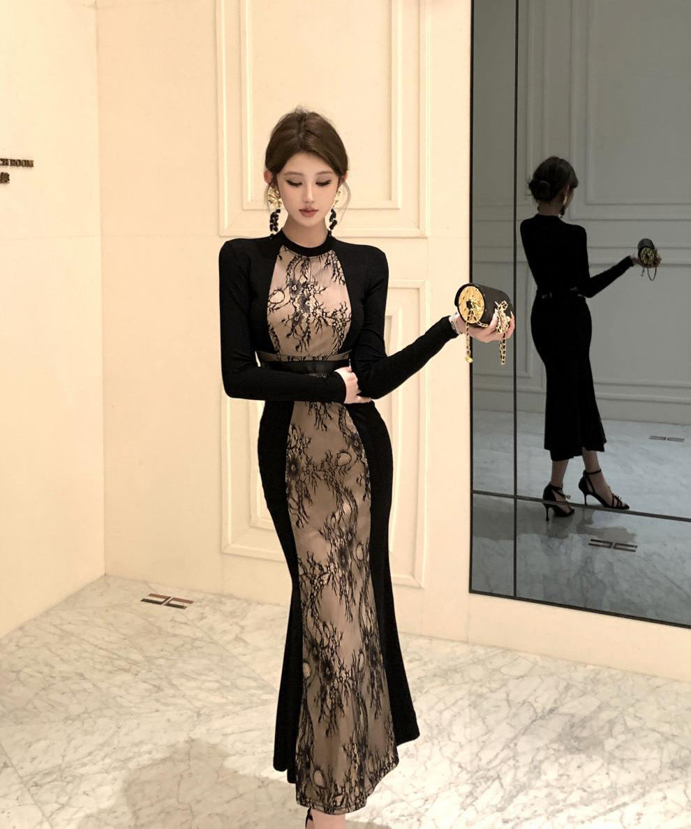 ロングドレス レース マーメイド エレガント 気質 袖付き 着痩せ セクシー XH2-ZED889133DXH343B