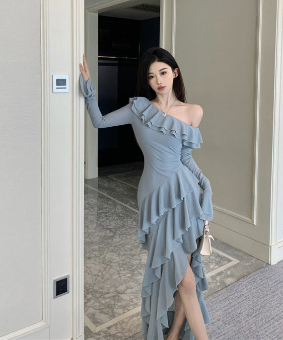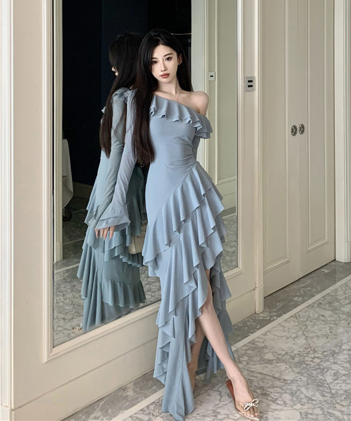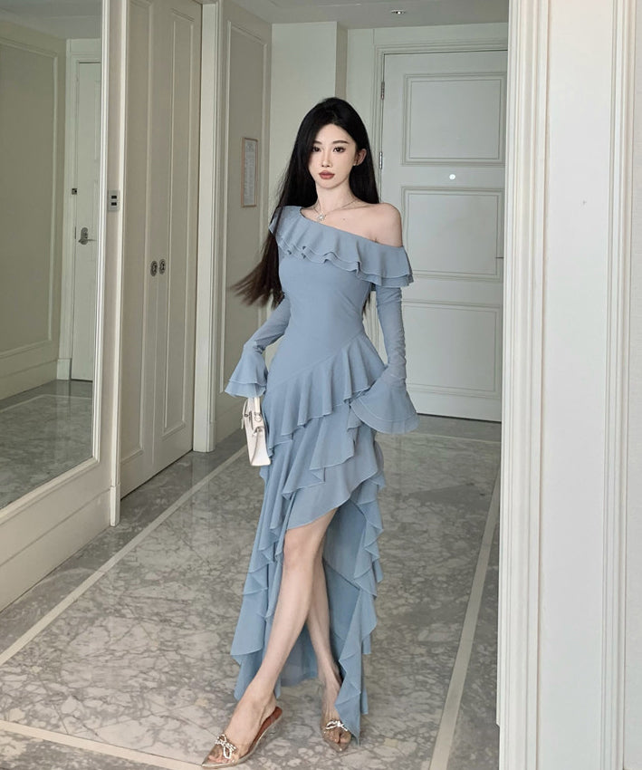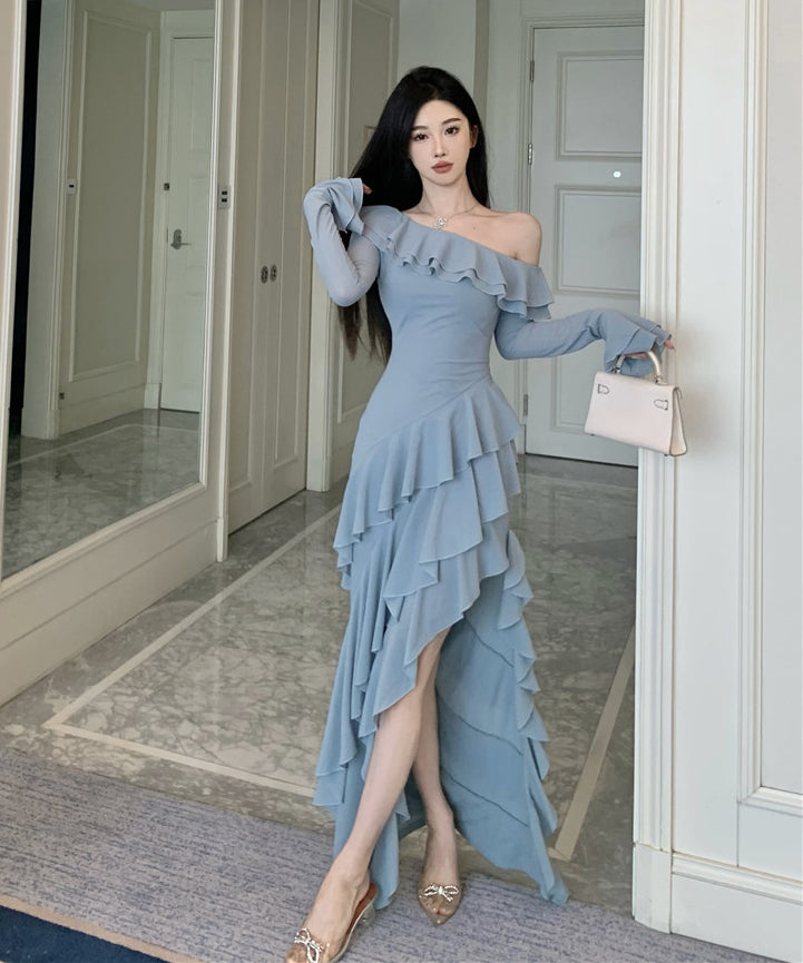ロングドレス ワンーショルダー フリー カワセクシー スリート 気質 大人可愛い 女子力 XH2-ZED885269DXH238B