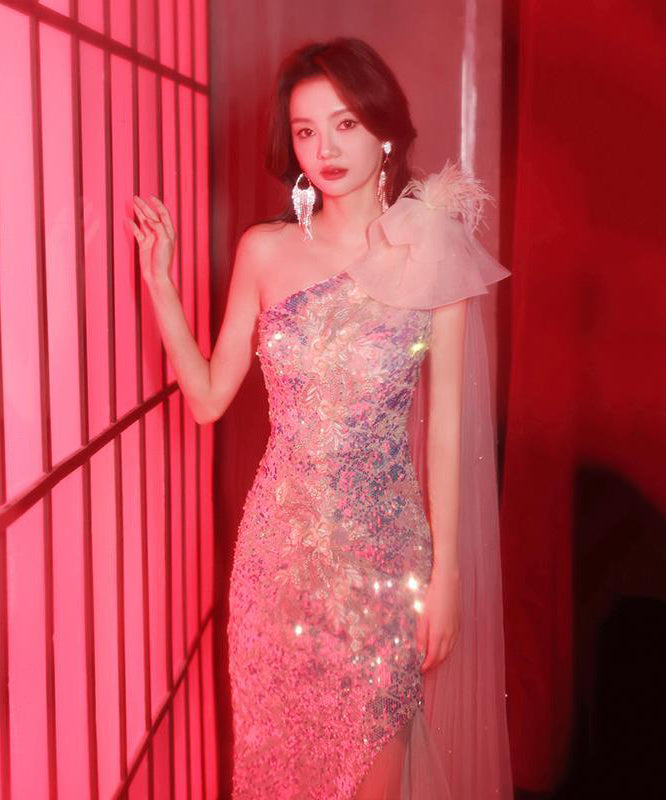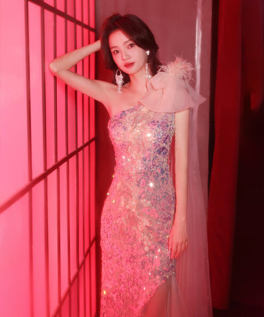 ロングドレス 宴会 キラキラ ナイトドレス ワンショルダー 人魚姫 誕生日 演奏会 XH2-MBYD-ltao722141041931