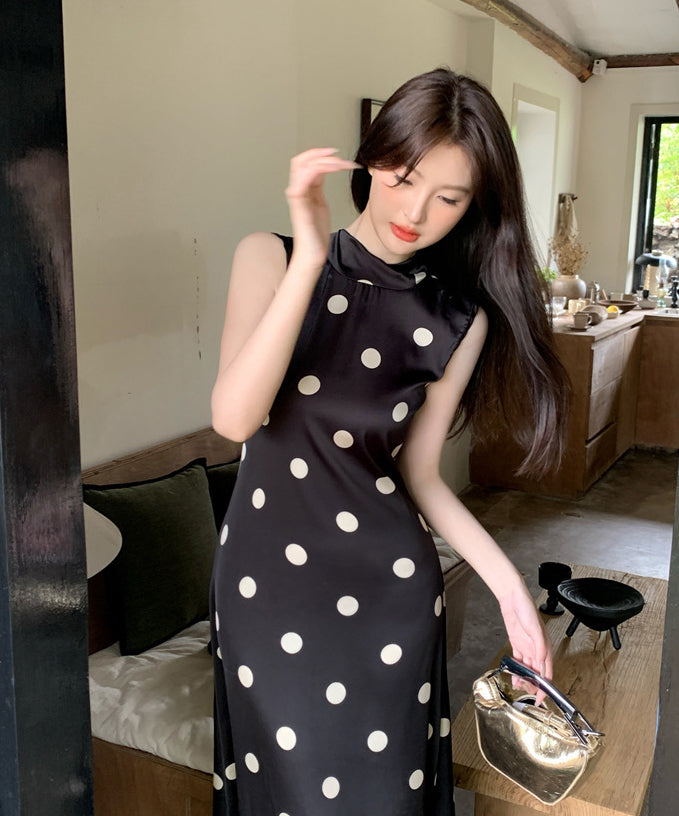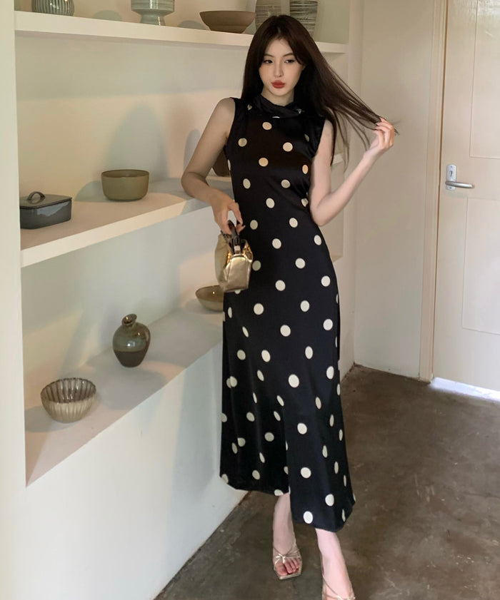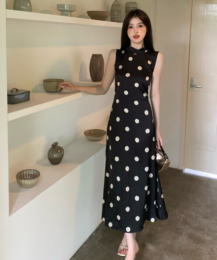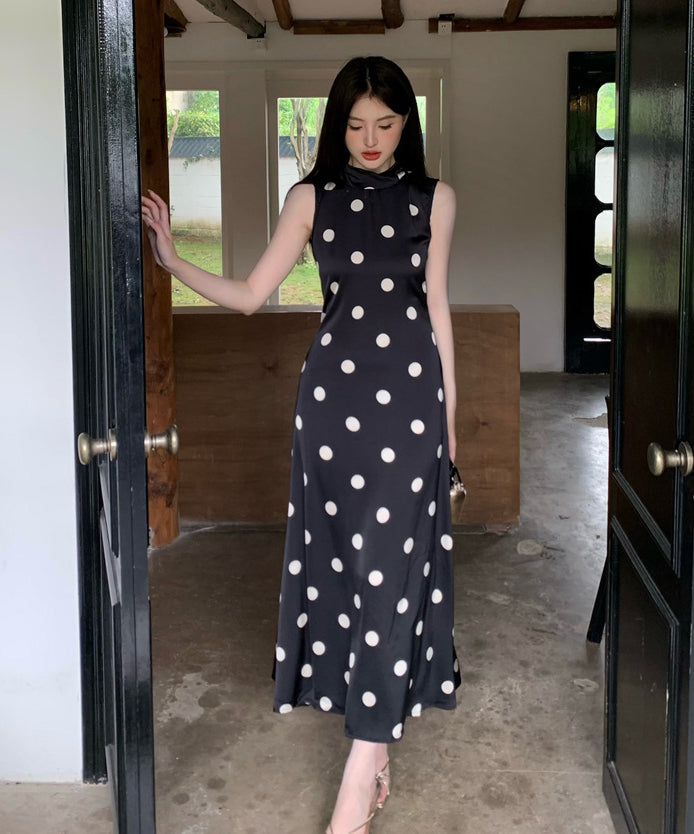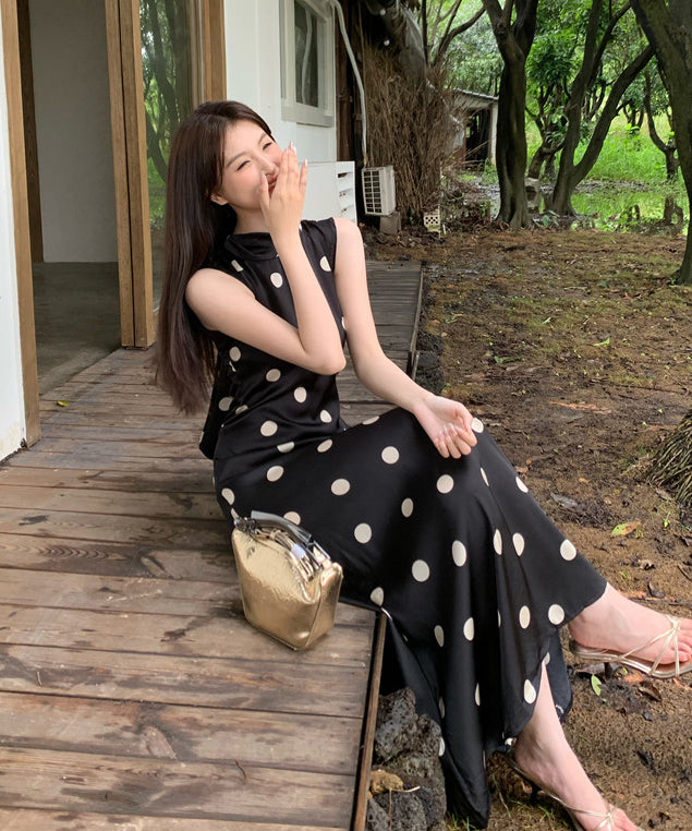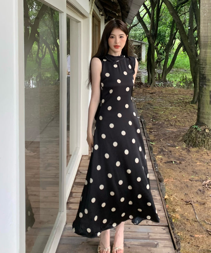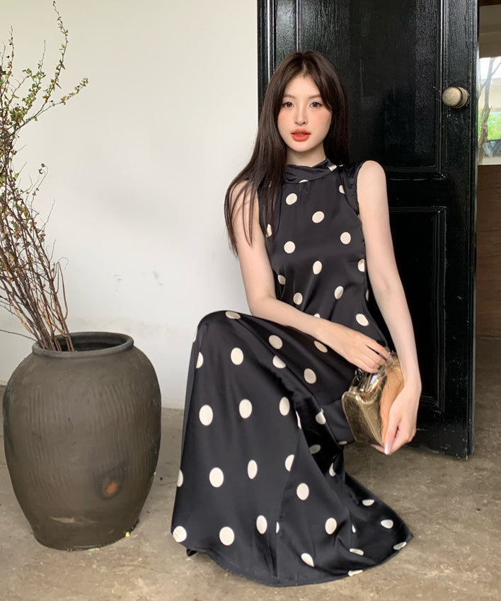 ロングドレス 水玉模様 かわいい オフショルダー 着痩せ おしゃれ 気質 YH2-ZED887011GT513