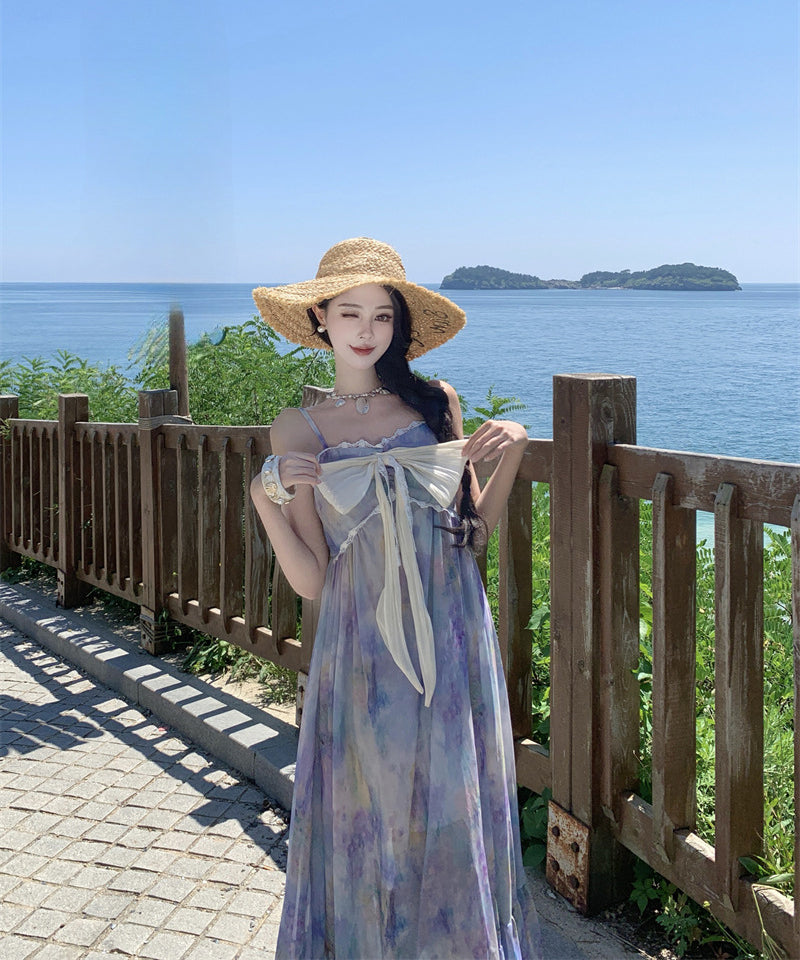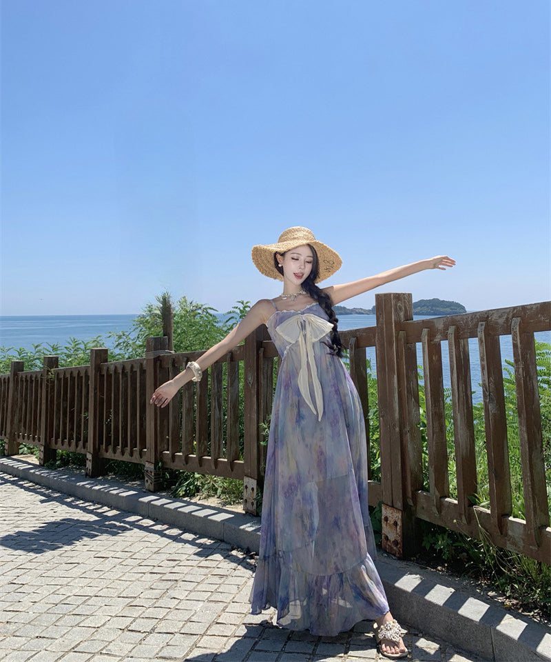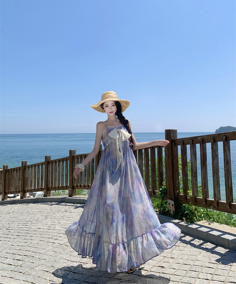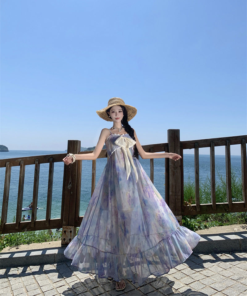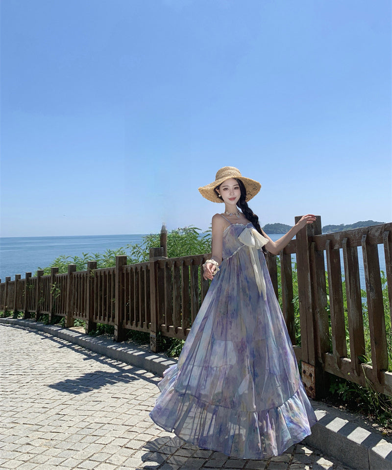 ロングドレス 海辺リゾート フレンチキャミソールワンピース 気品あふれる アシンメトリー レトロエレガント 写真映え デート JC2-CD1-E289-82050600