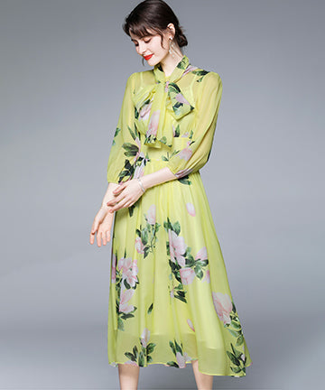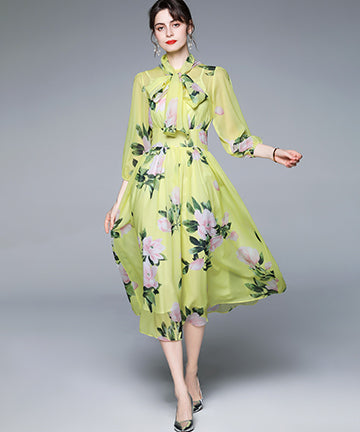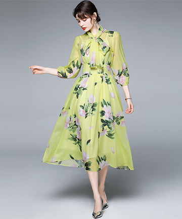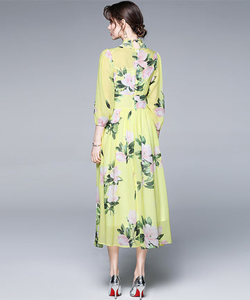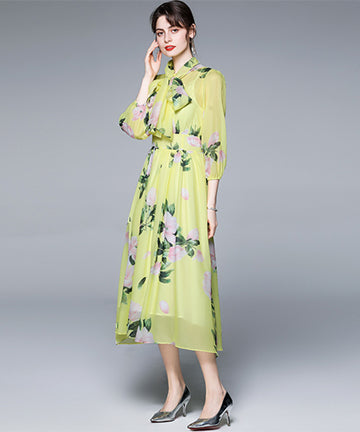 ロングドレス 淑やか 通勤 高級感 着瘦せ 花柄 XH2-AEM6607
