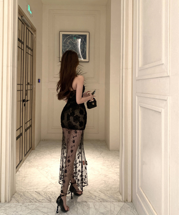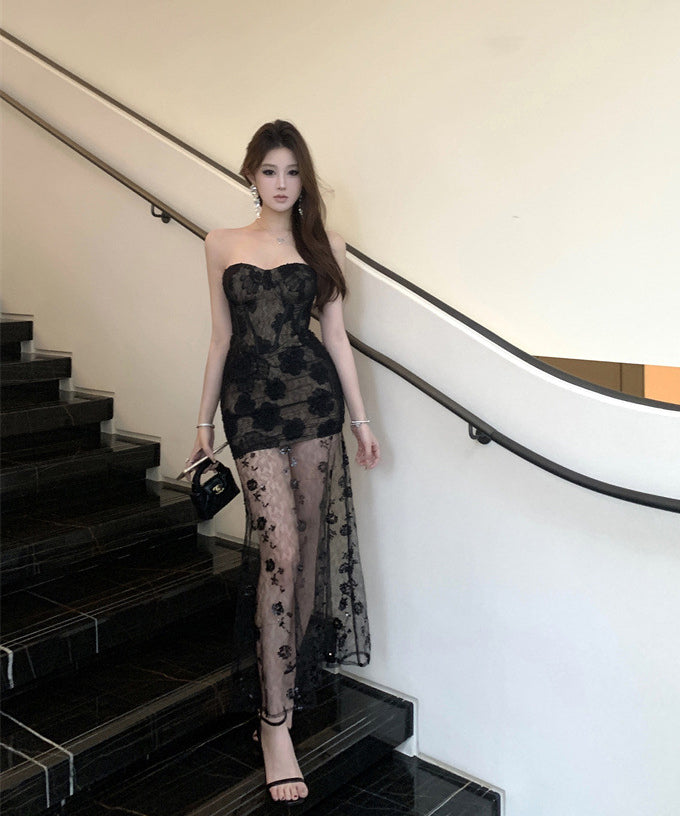 ロングドレス 透明感 ベアトップ エレガント 気質 宴会 セクシー フラワー パーティーXH2-ZED882487DXH437A