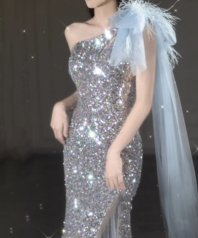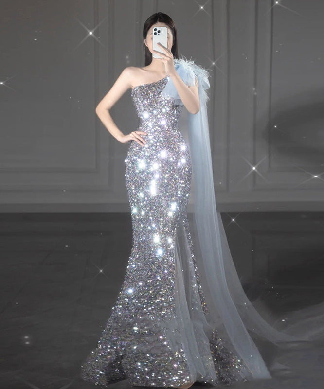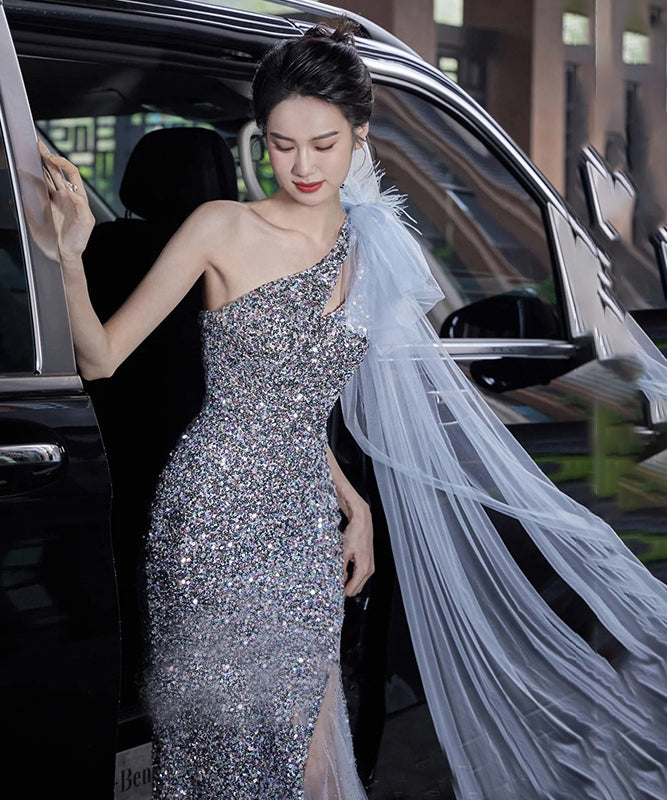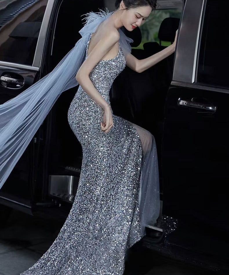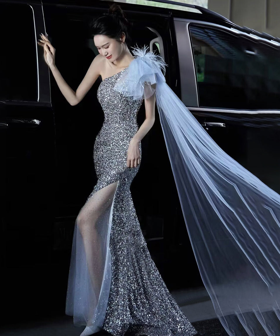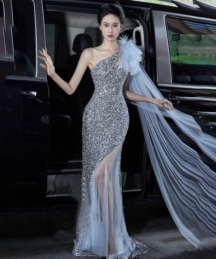 ロングドレス 高品質 キラキラ ナイトドレス 宴会 ワンショルダー 演奏会 XH2-TSZY5-6