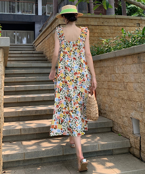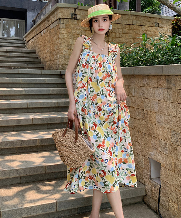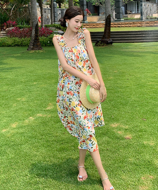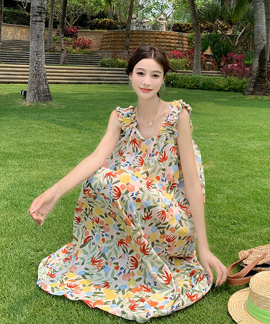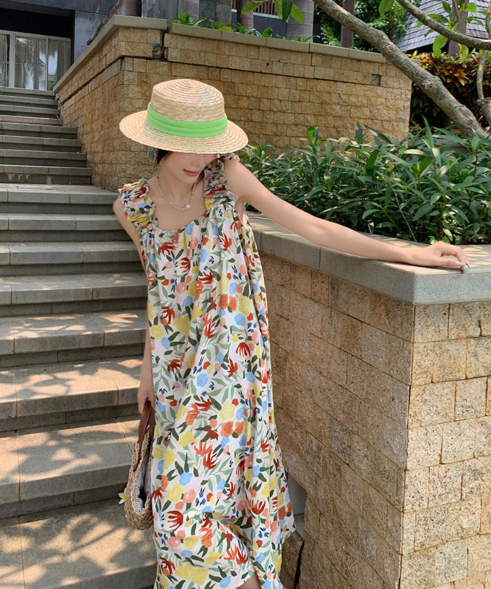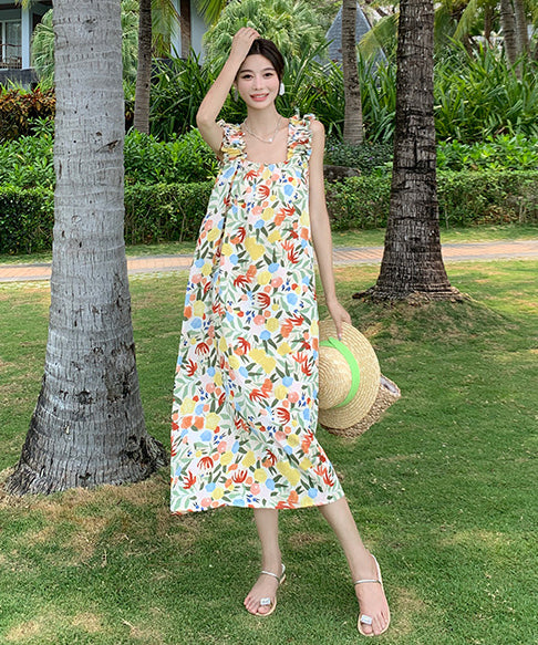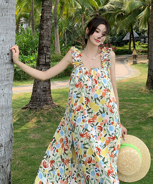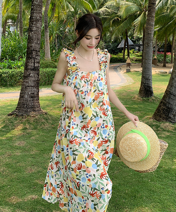 ロング丈 サンドレス 夏 かわいい 花柄 新作 ワンピース 海辺 ハワイ YH2-QJ9286