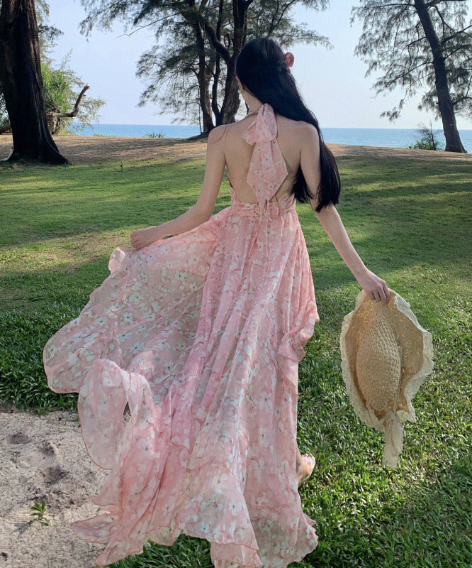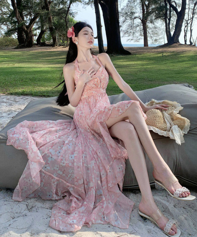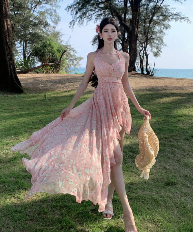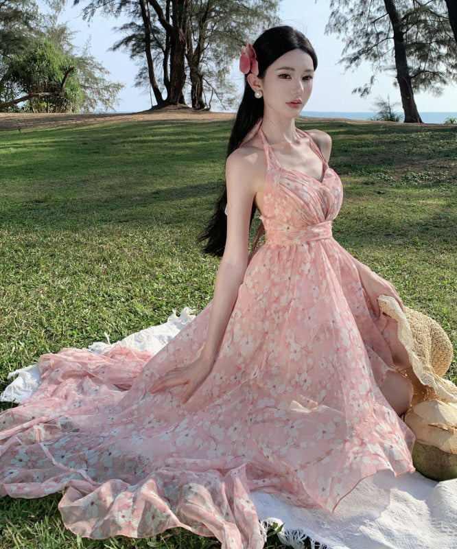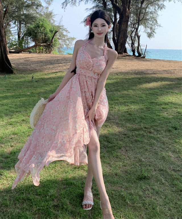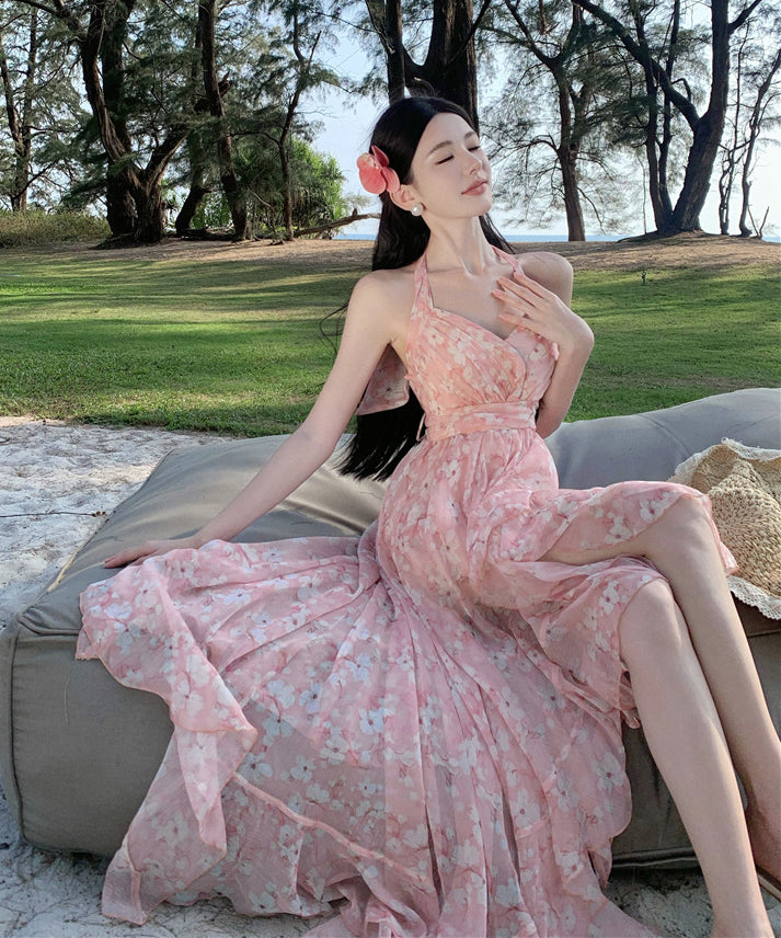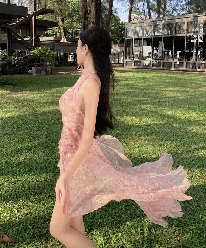 ワンピース ドレス サンドレス チュール ホルターネック 夏新作 花柄 背露出 YH2-ZED888709B13