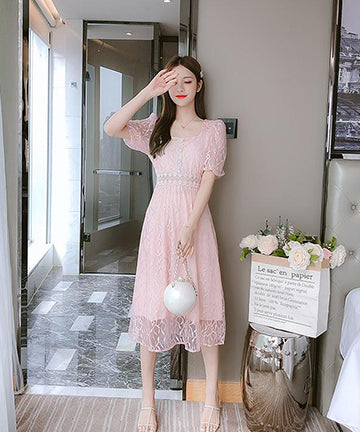 【即日発送可能】仙女風 レース 膝丈ドレス 淑やか 大人可愛い ダイヤモンド XH2-PDD-JSSD