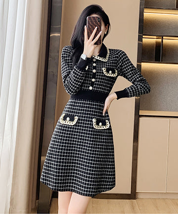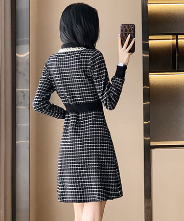 千鳥柄 キャバドレス ニットワンピース 脚長効果 大人可愛い 姉 着痩せ LT2-XC-8803#