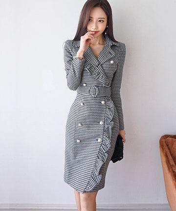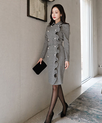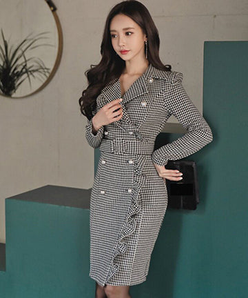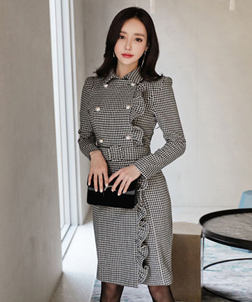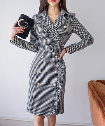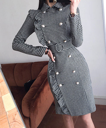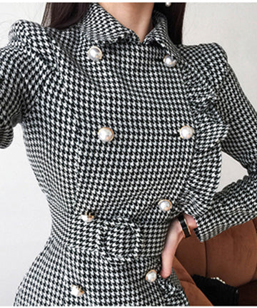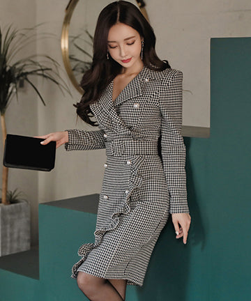 千鳥格子 冬コーデ 通勤 大人可愛い Ⅴネック セクシー エレガント 気質 XH2-ZED88752E