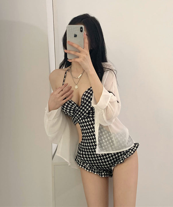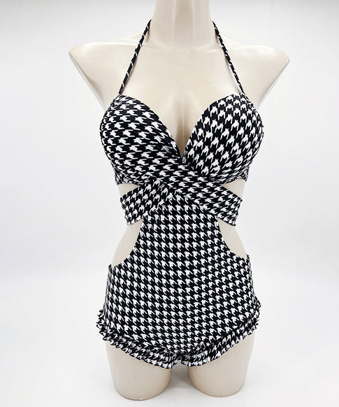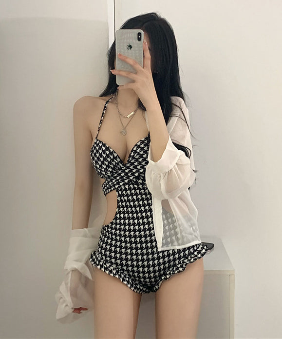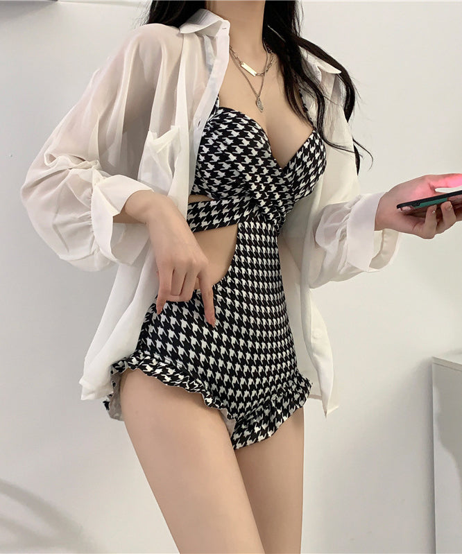 千鳥格子 水着ビキニ 夏 可愛い モノキニ 体型カバー 温泉 旅行 XH7-JCL8211