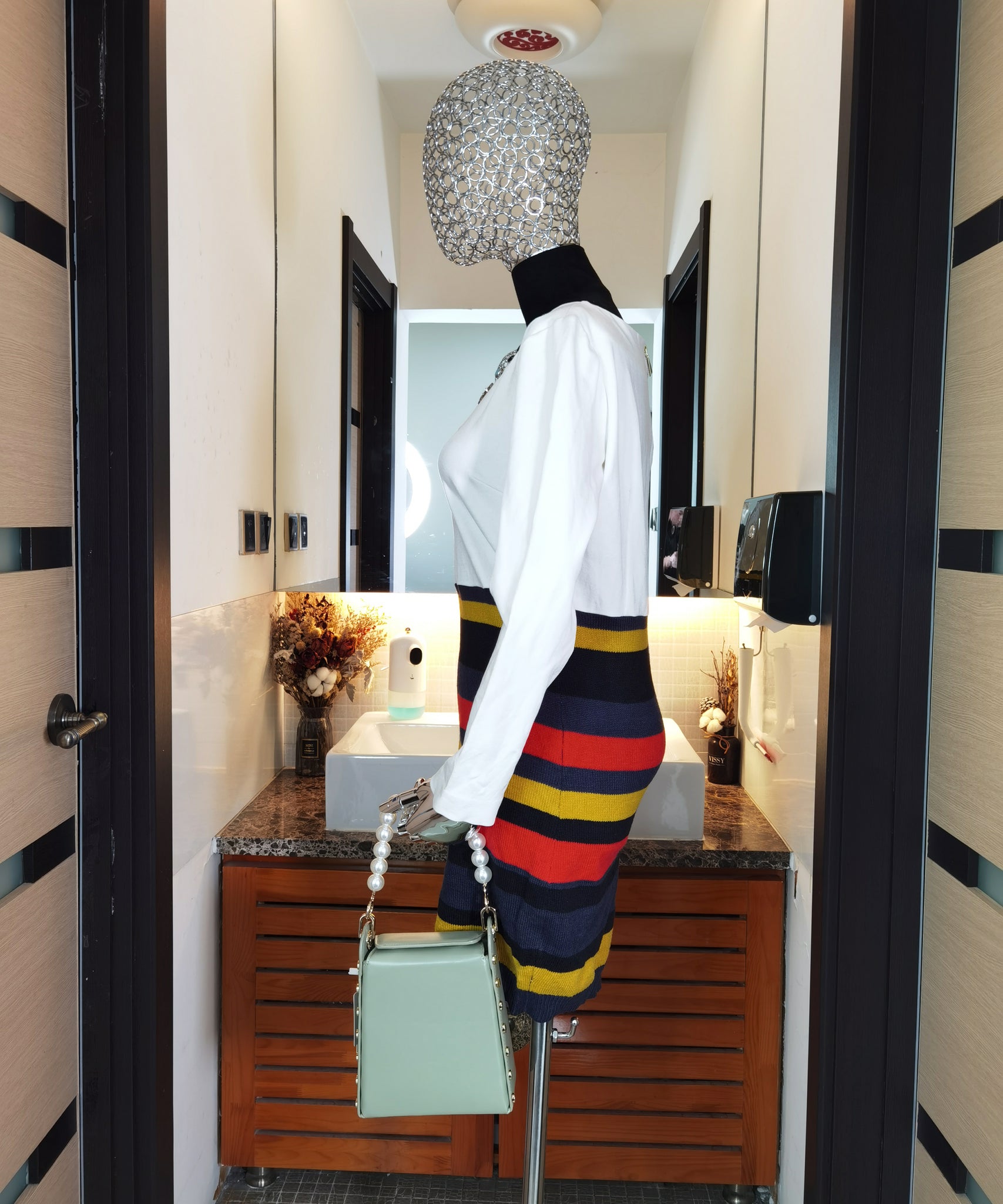即日発送可能【一枚だけ】自社 デザイナー 製品 ニット ミニドレス ピカピカ 新作 YJ009