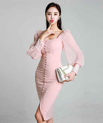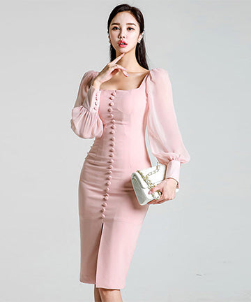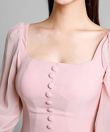可愛い パフスリーブ エレガント 淑女 新作 スクエアネック セクシー 同伴 XH2-ZED88772A