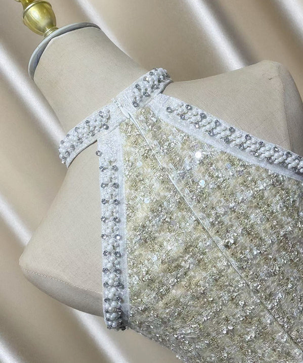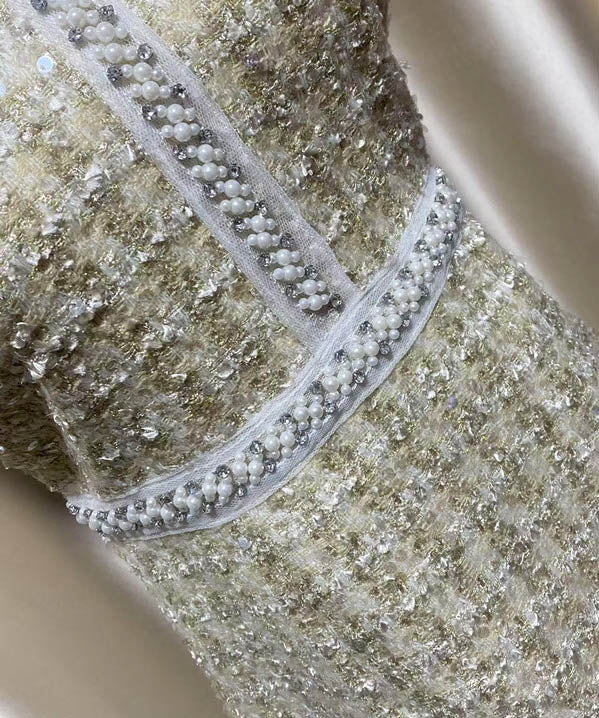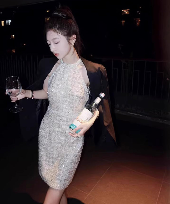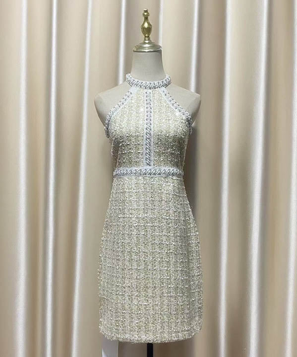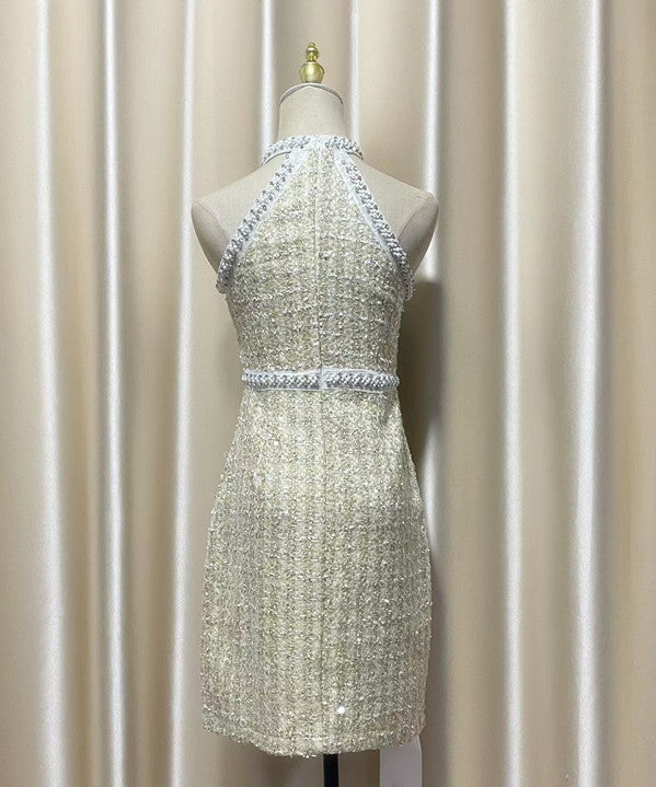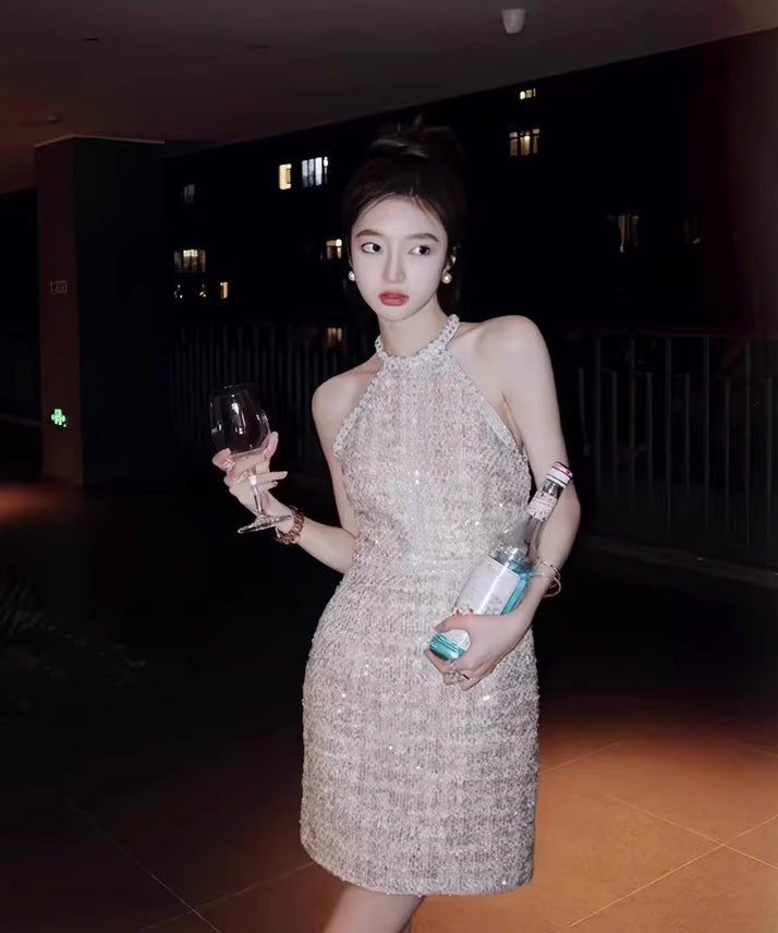 手作りドレスツイードドレス高級感ミニドレスセレブ風キラキラ宴会パーティー着痩せ気質 WQ2-GZXX002