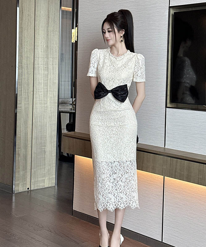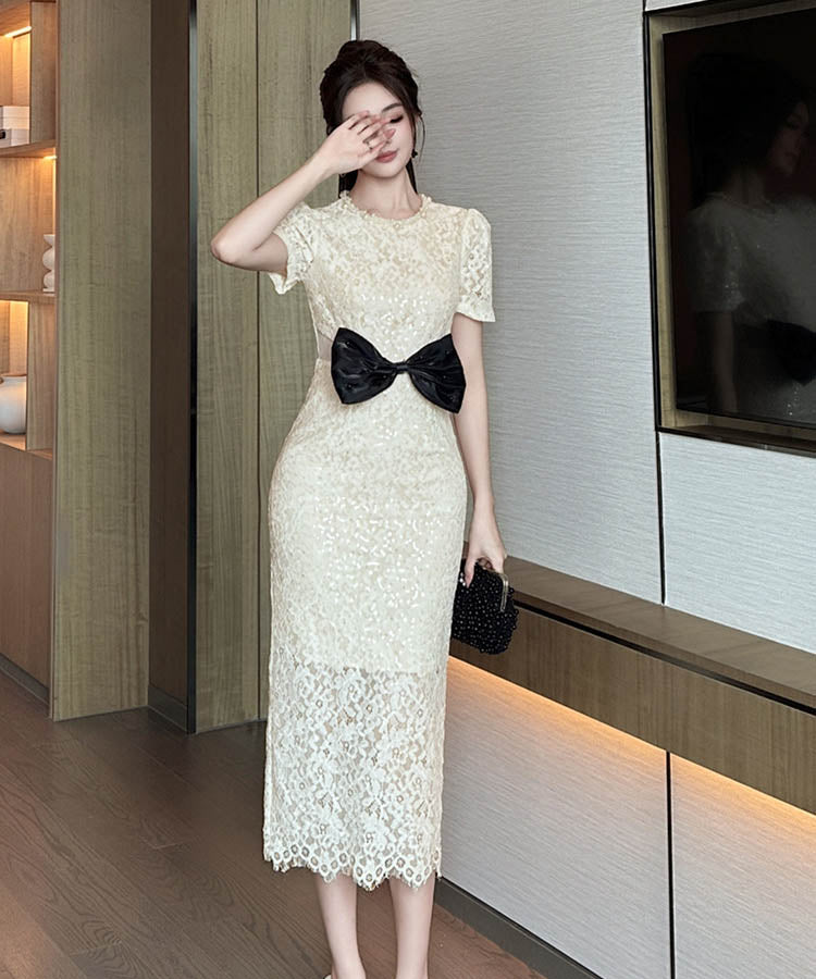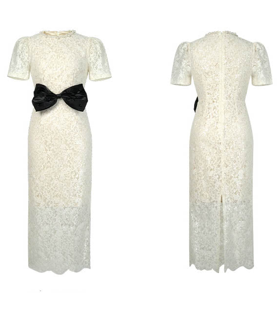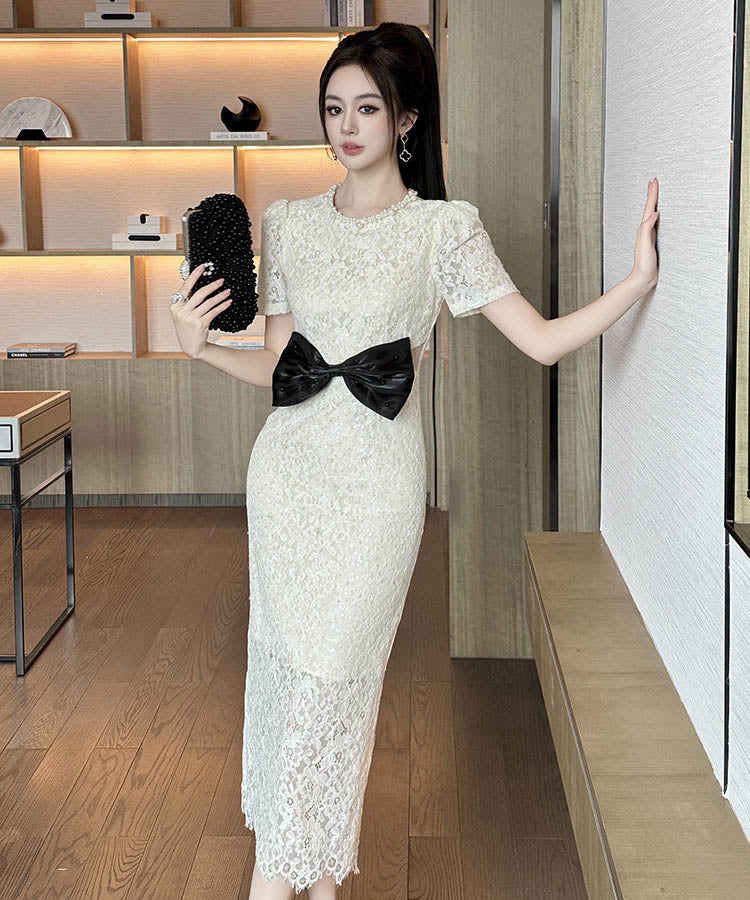 手作りドレスロングドレス膝丈ドレスレースリボン着痩せ気質宴会パーティー二次会セレブ風高級感 WQ2-JY21675