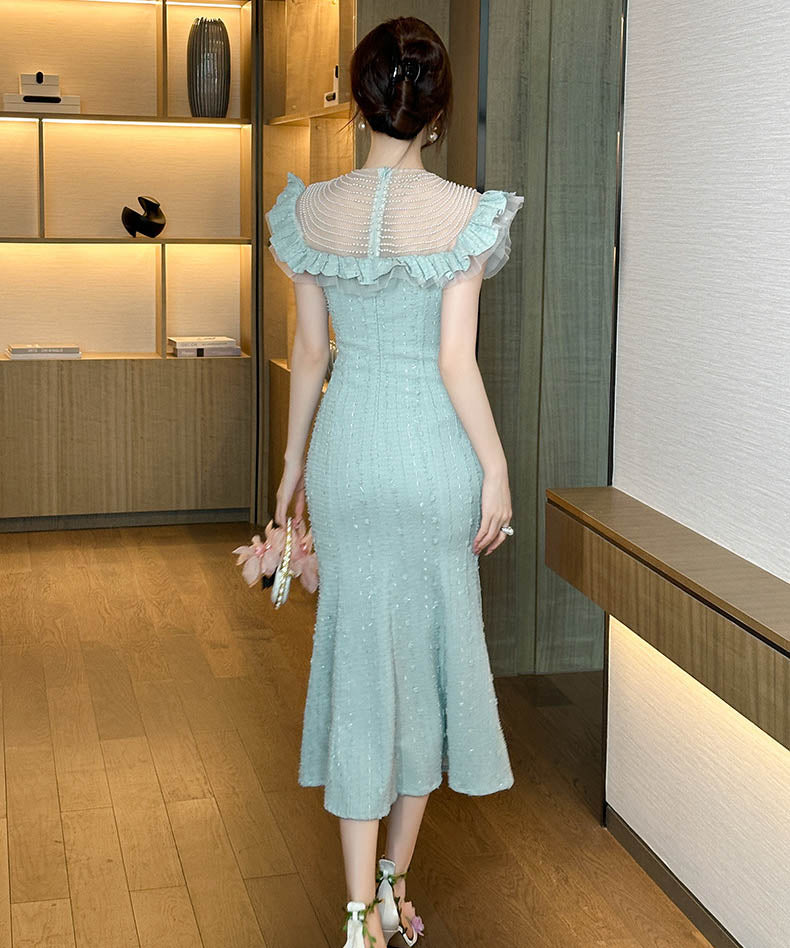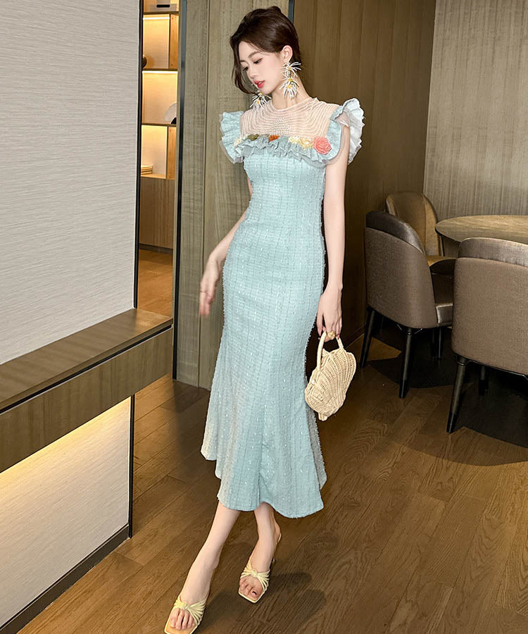 手作りドレス膝丈ドレスフリル気質マーメイドドレス宴会パーティーセレブ風フラワー高級感 WQ2-JY50935