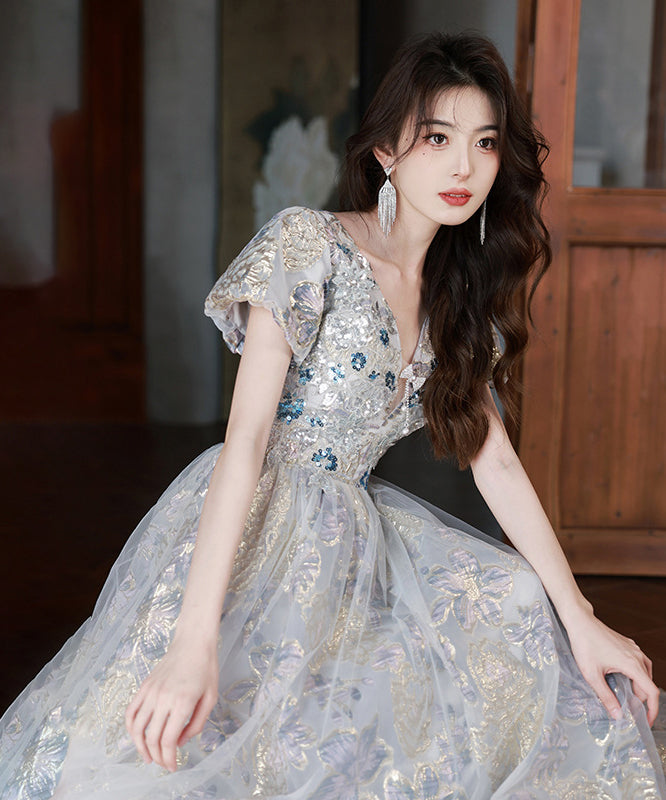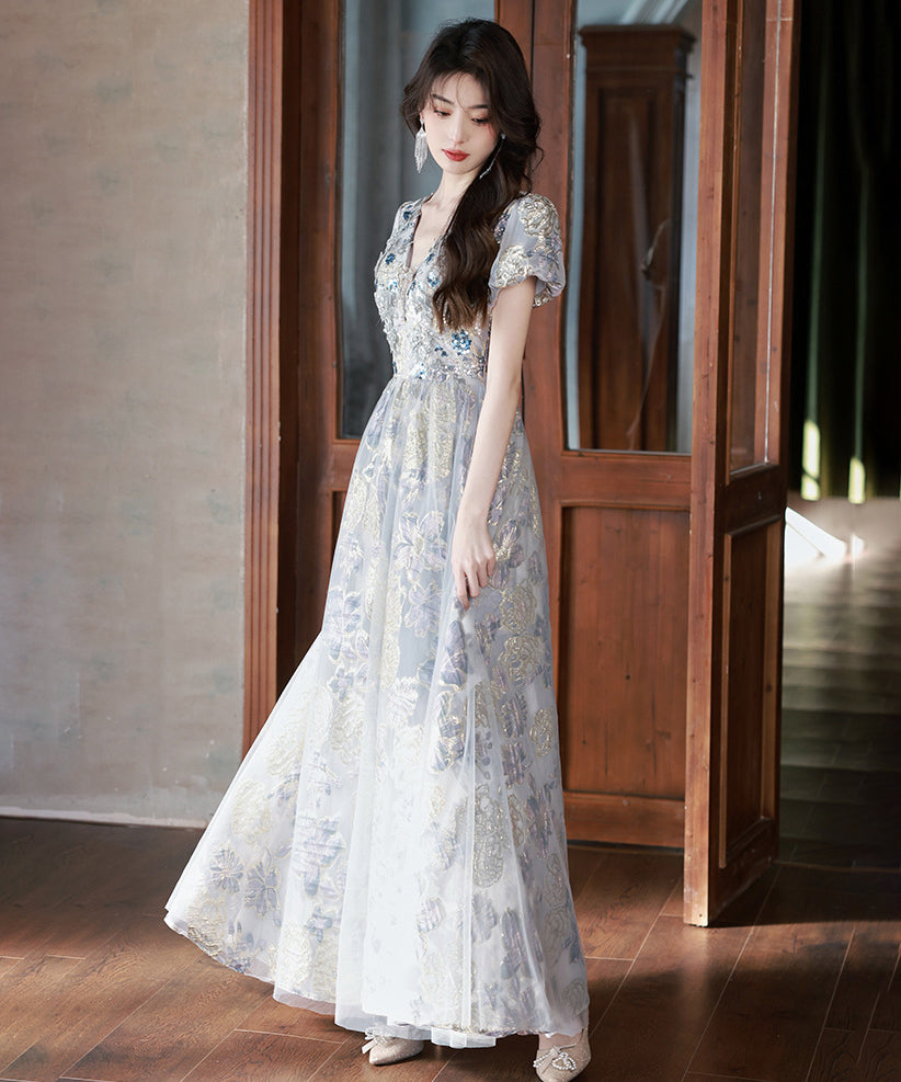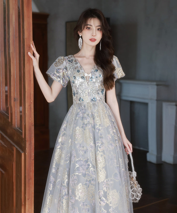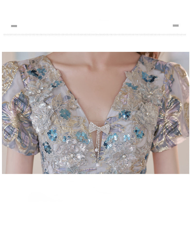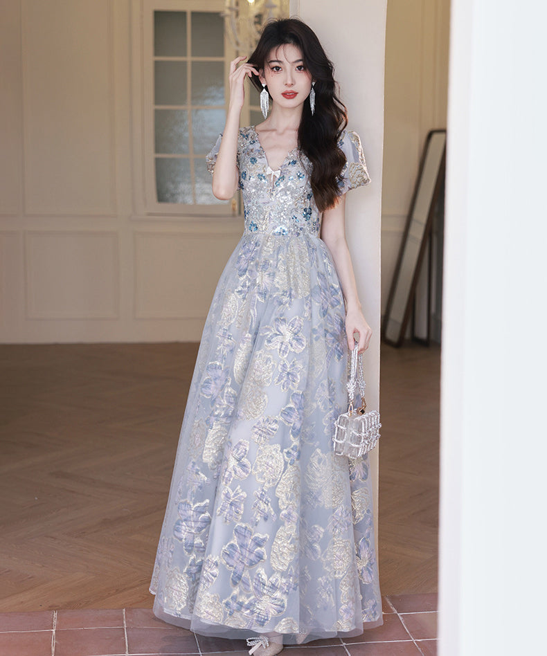 手作りロングドレス パーティードレス 刺繍 キラキラ 花柄 誕生日 華奢感 宴会 演奏会 XH2-MBYD-ltao752351357252