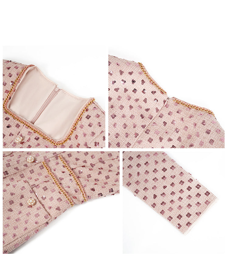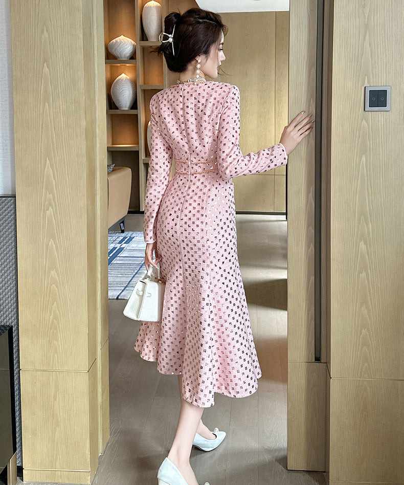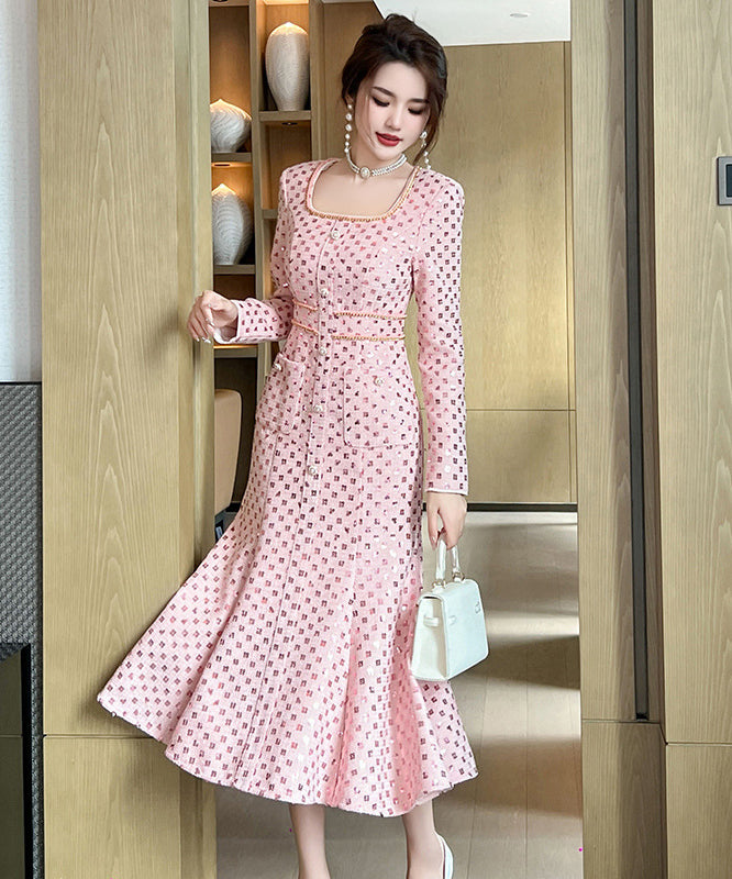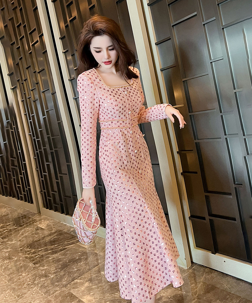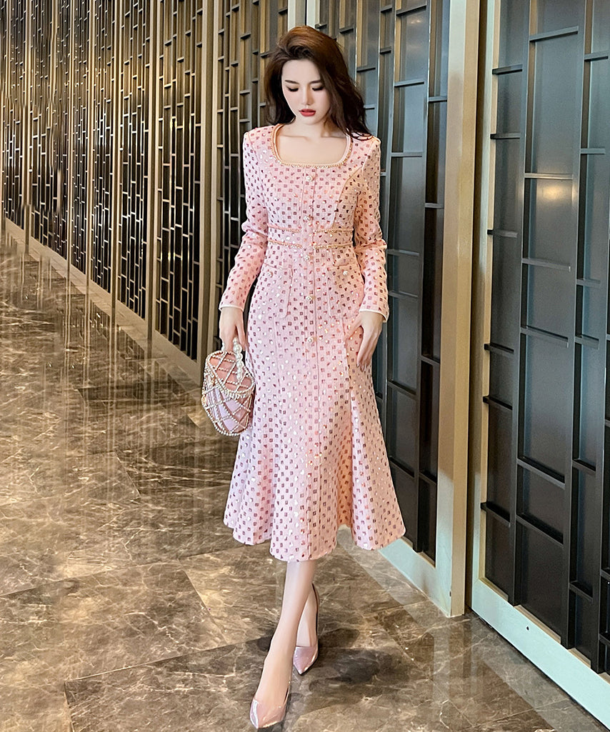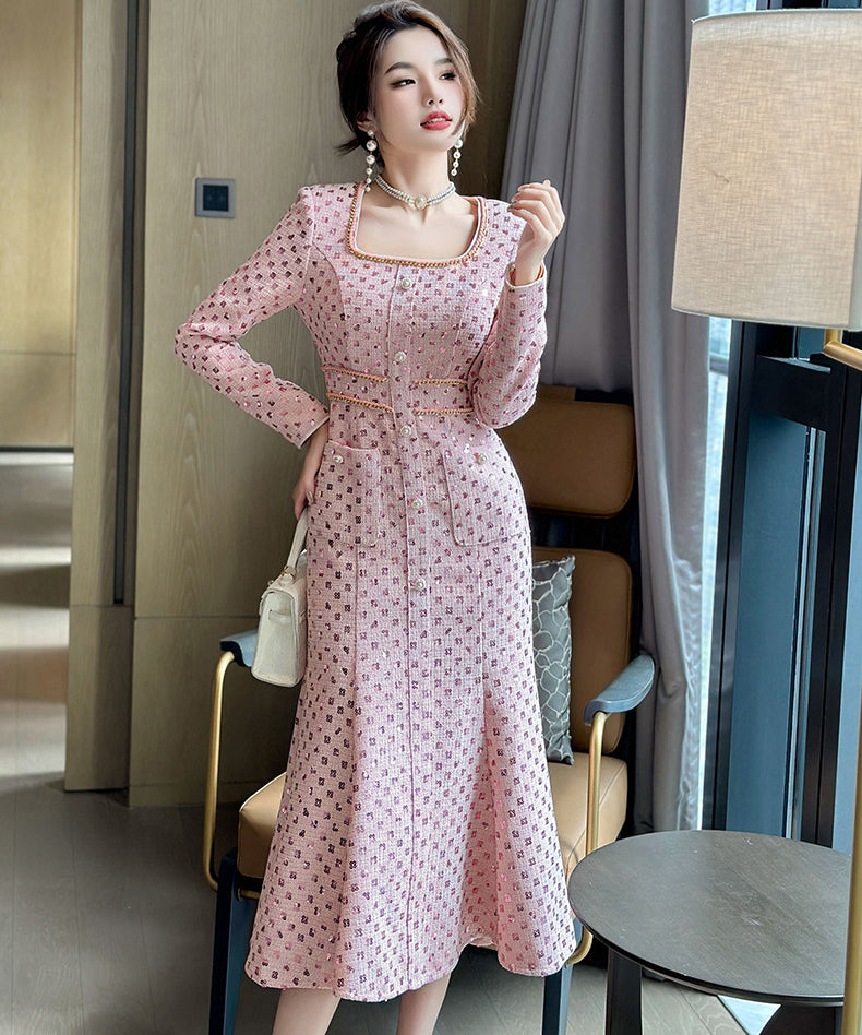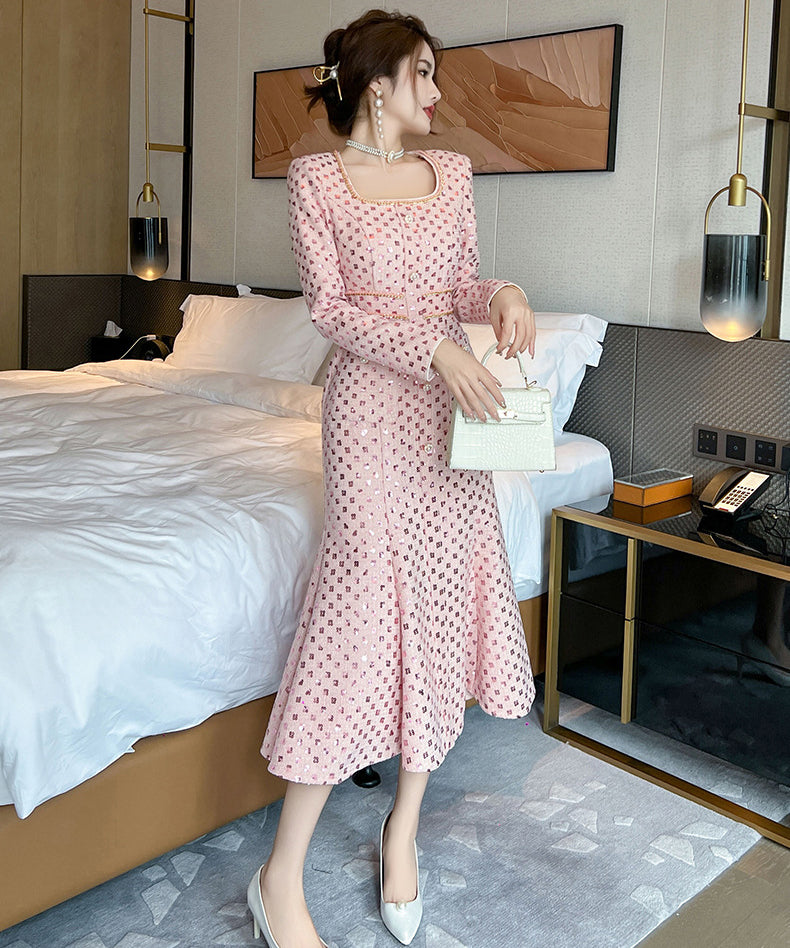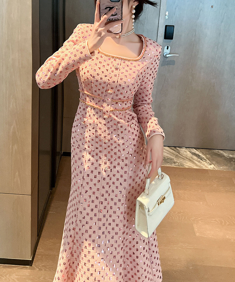 手作り ツイードドレス セレブ風 高級感 キラキラ エレガント 着痩せ 気質 韓国っぽ XH2-JY50696