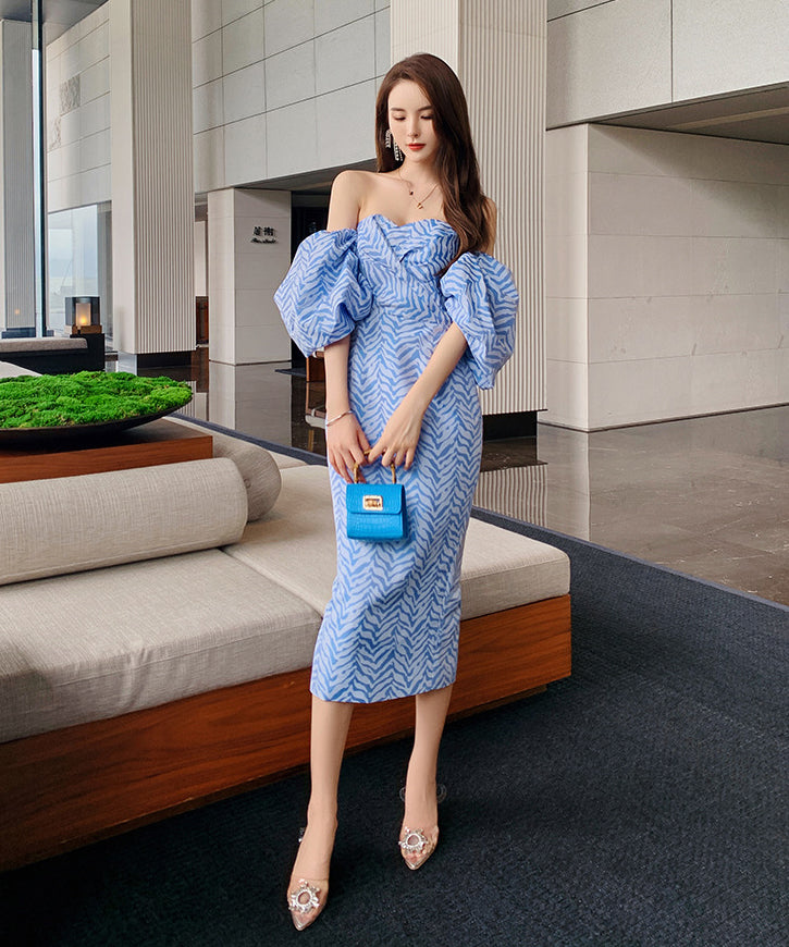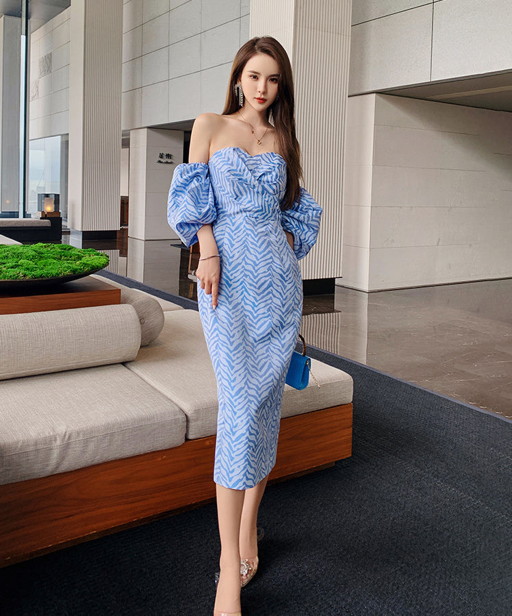 【手作り】ドレス ひざ丈ドレス 新作 かわいい オフショルダー 着瘦せ MY2-JY5173