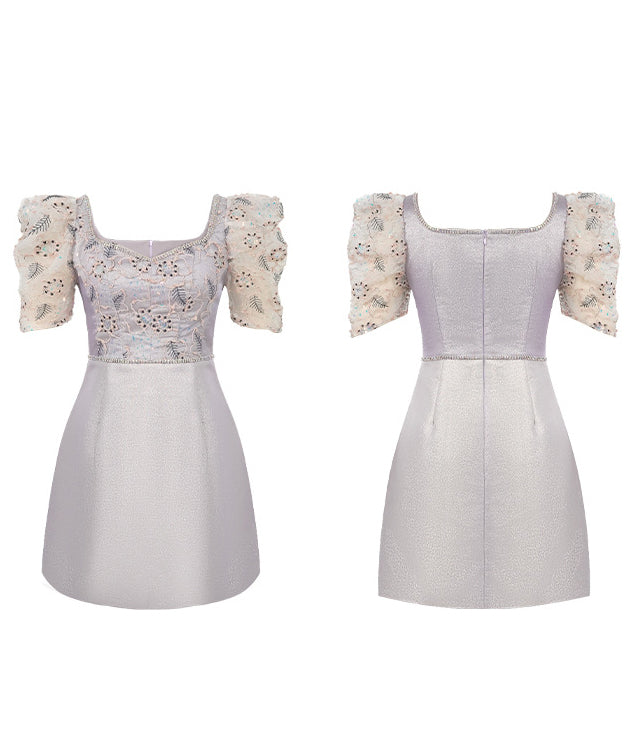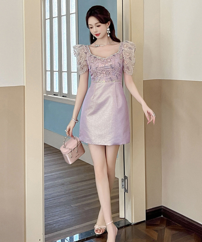 手作り ミニドレス エレガント セレブ風 パフスリーブ カワセクシー 高級感 宴会 キラキラ XH2-JY91061
