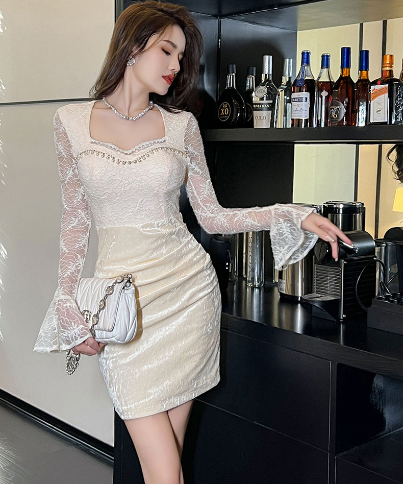 手作り ミニドレス エレガント セレブ風 レース カワセクシー 高級感 宴会 キラキラ XH2-JY21057