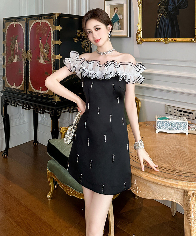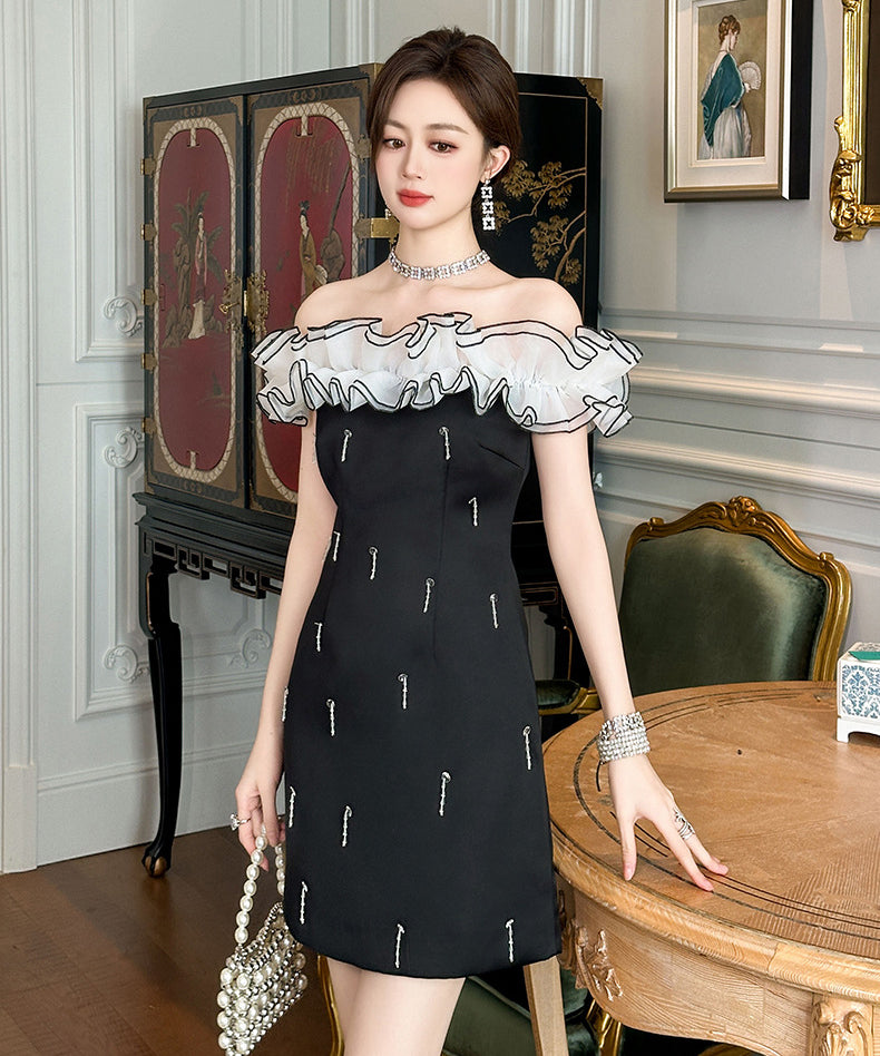 手作り ミニドレス オフショルダー カワセクシー キラキラ 宴会 セレブ風 高級感 XH2-JY50817