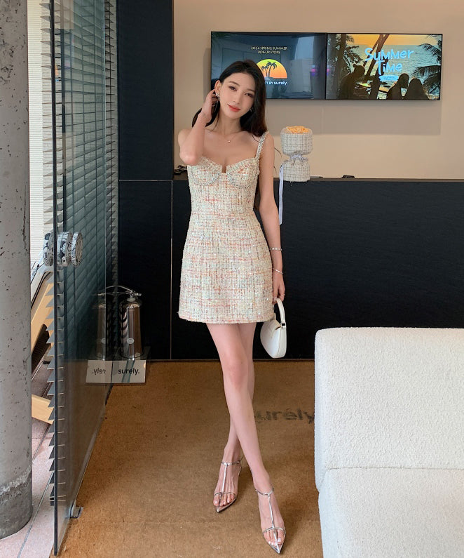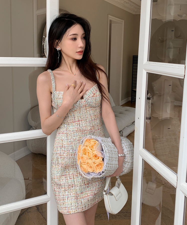 手作り ミニドレス ツイードドレス セレブ風 セクシー 高級感 デートディナー 誕生会ドレス XH2-NN-PF24-168