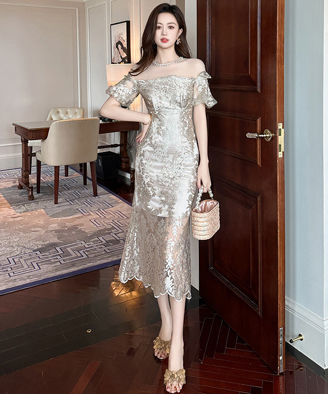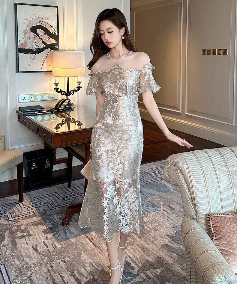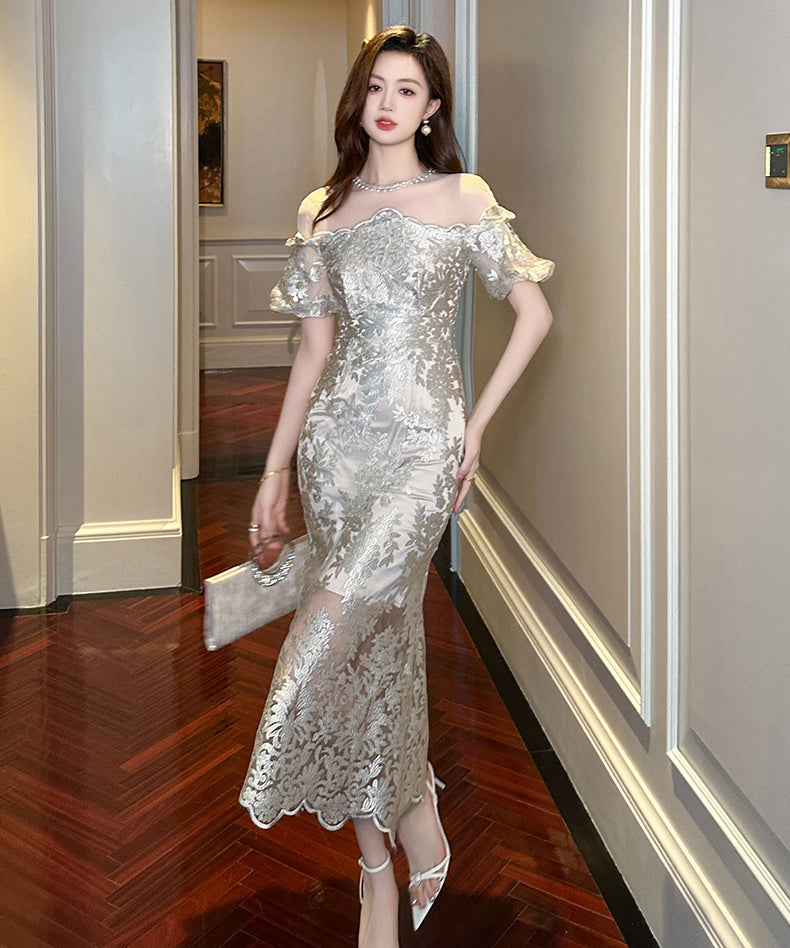 手作り ロングドレス 華奢感 レース 宴会 高級感 セレブ風 黄金時代 光沢 XH2-JY21330
