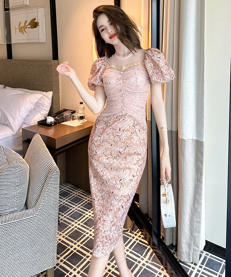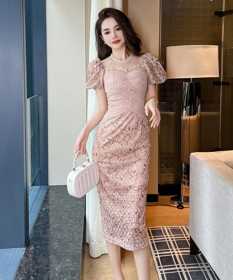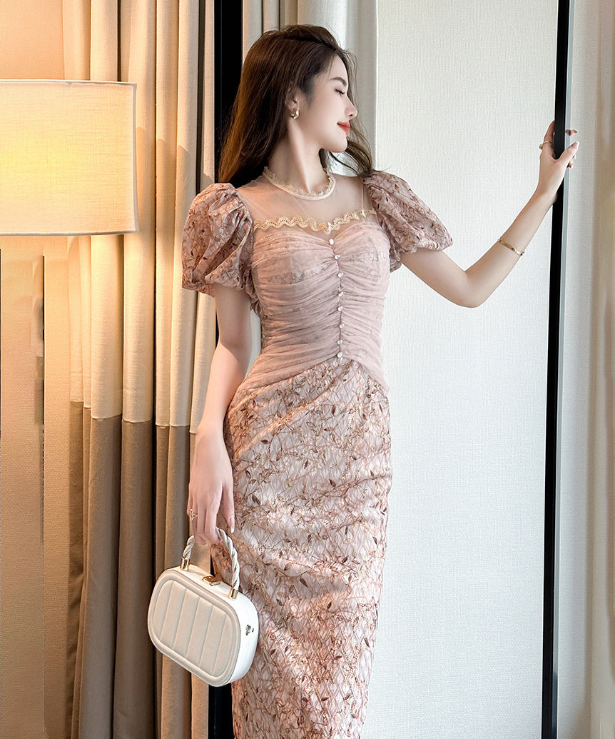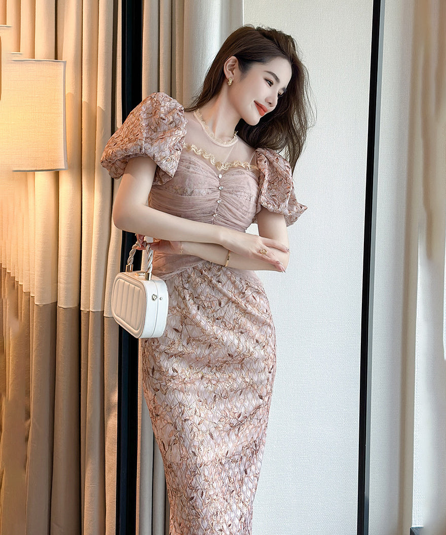 【手作り】ロングドレス 高品質 レース パフスリーブ パフスリーブ 気質 宴会 XH2-JY50245