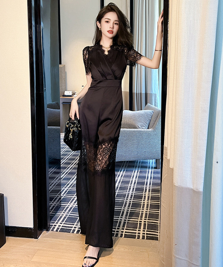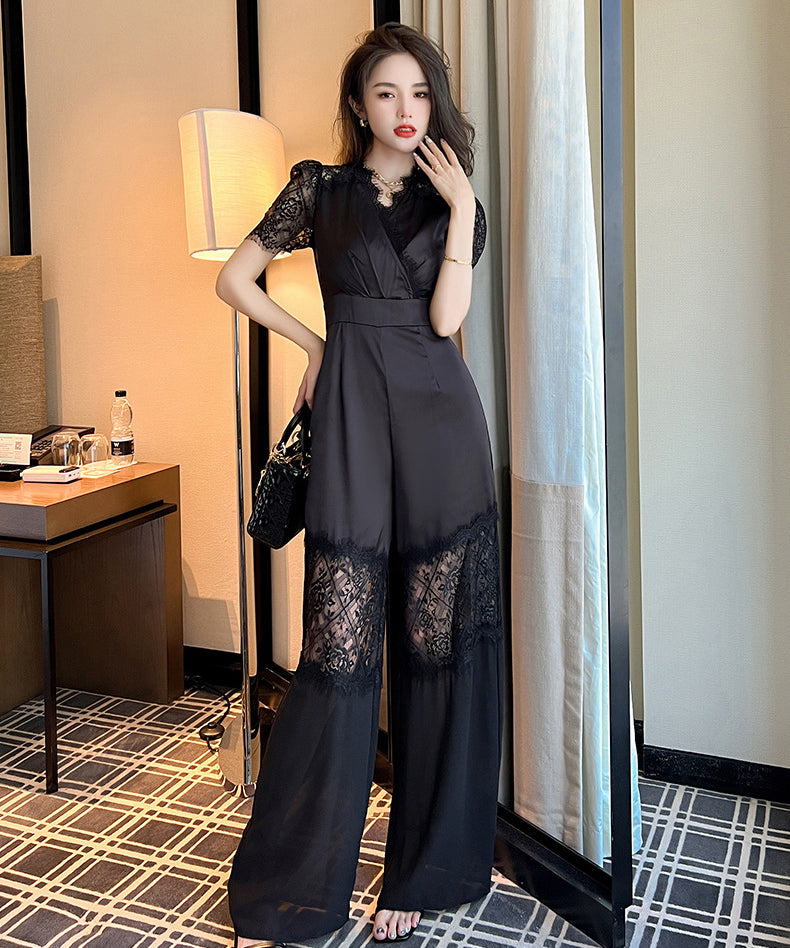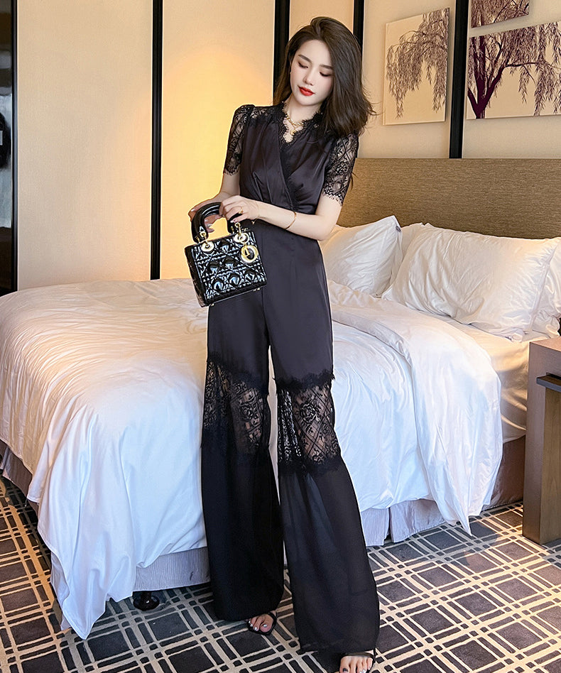 【手作り】ワイドパンツ パッチワーク レース エレガント ゴージャス 通勤 高級感 新作 XH2-JY50145
