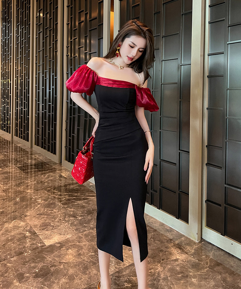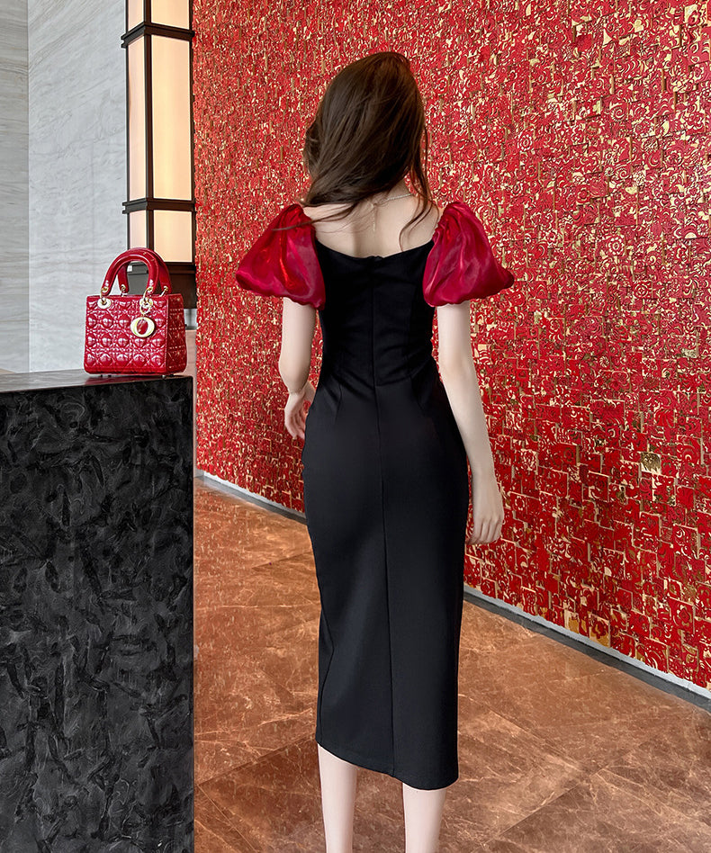 手作り 膝丈ドレス エレガント セレブ風 宴会 チュール 披露宴 YH2-JY30117