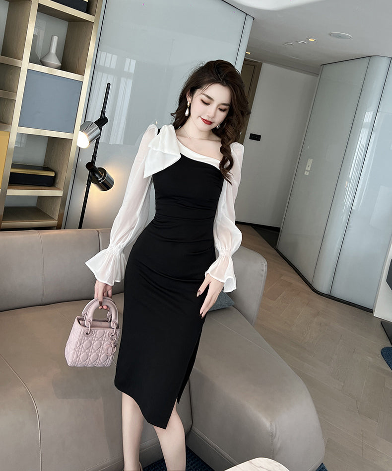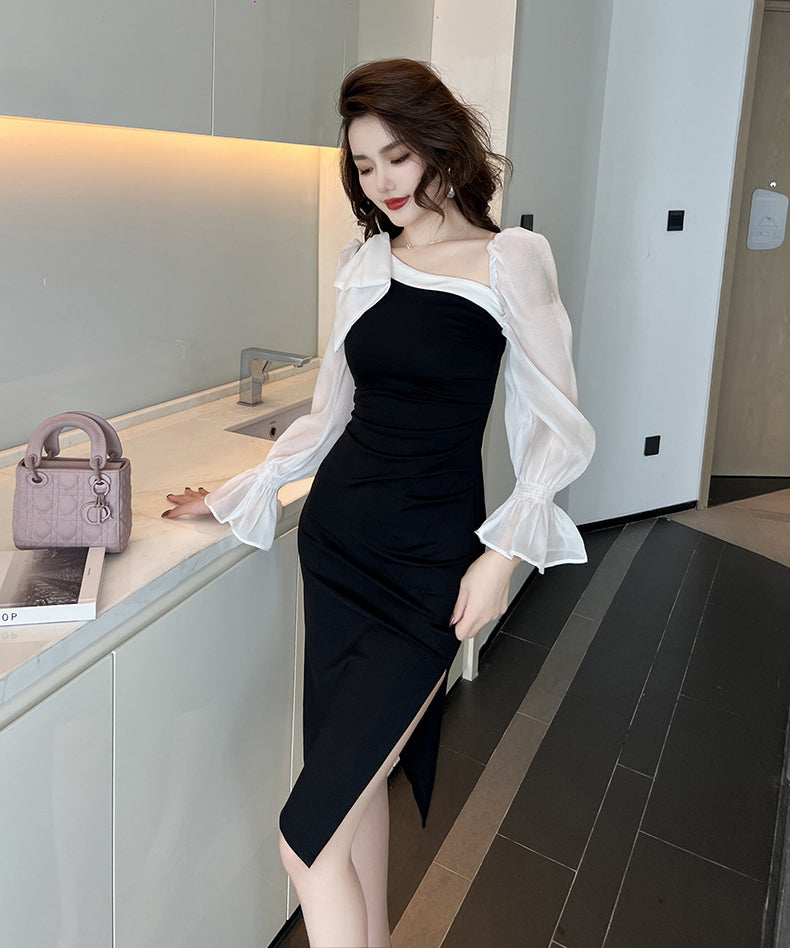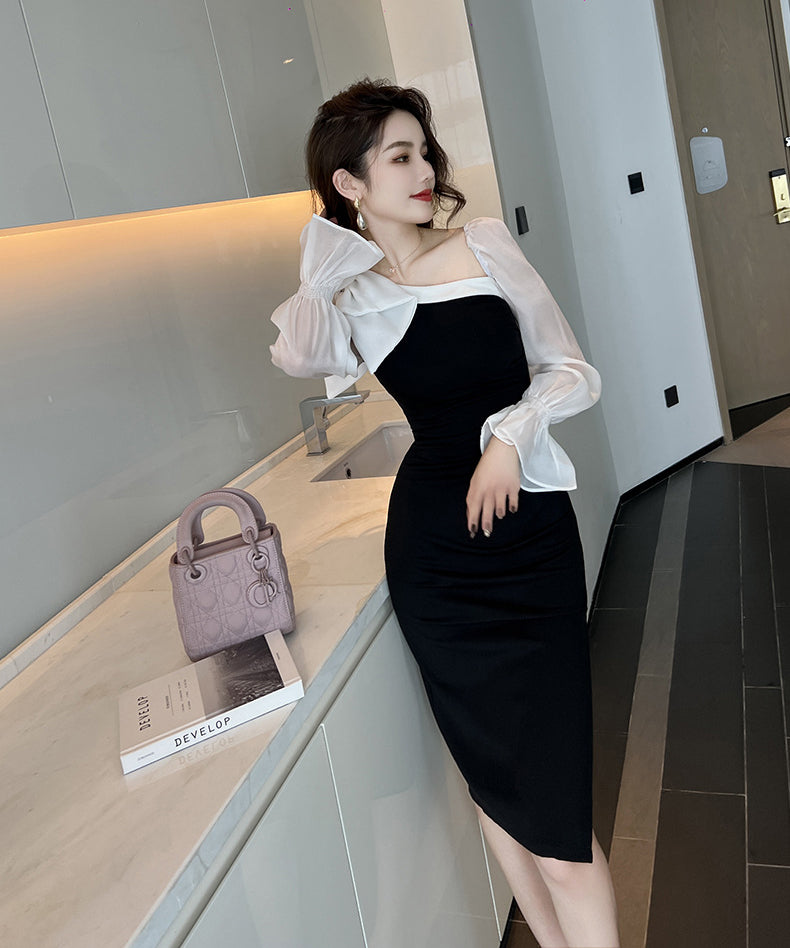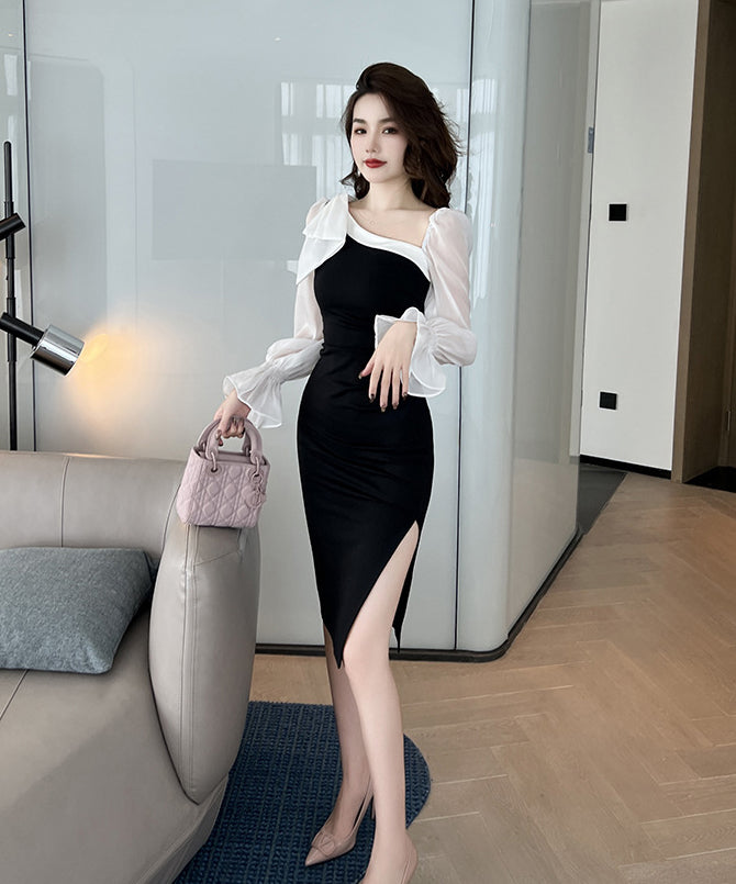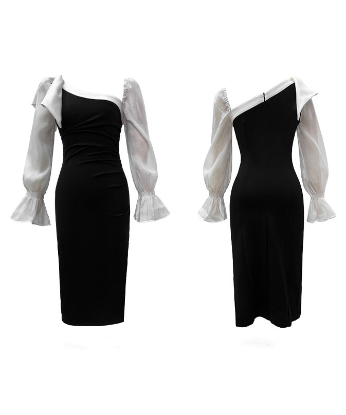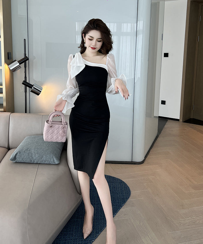 手作り 膝丈ドレス エレガント セレブ風 非対称カワセクシー 高級感 宴会 XH2-JY6095