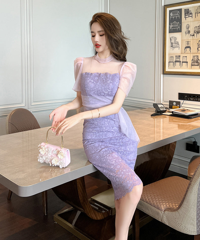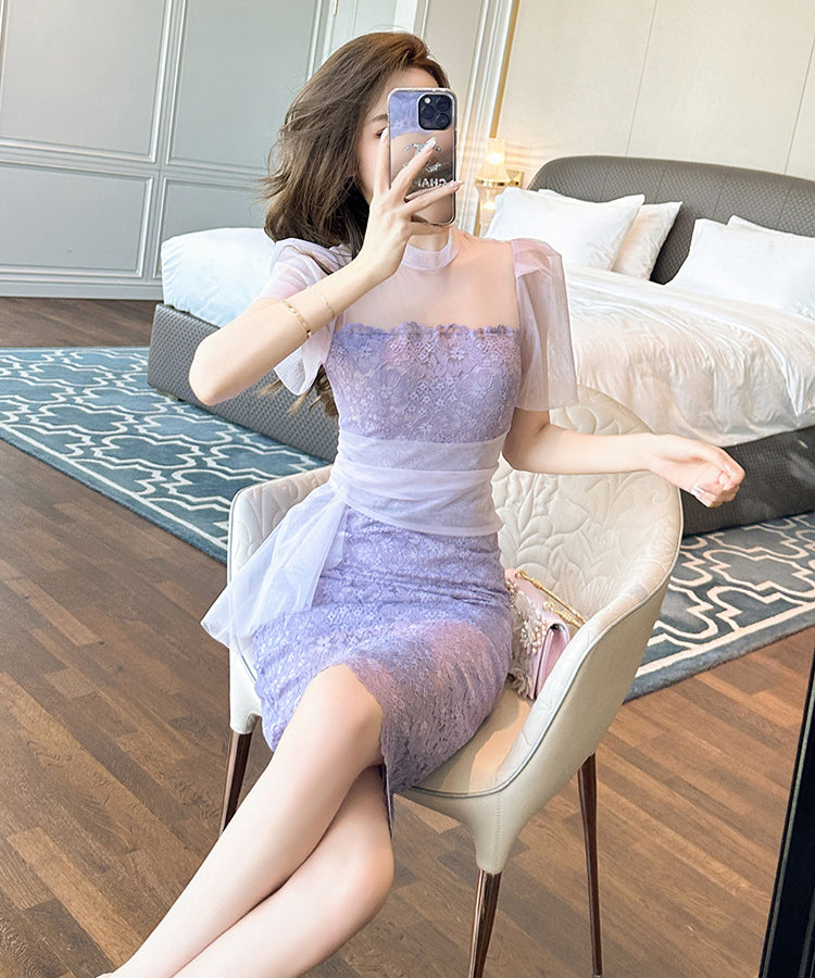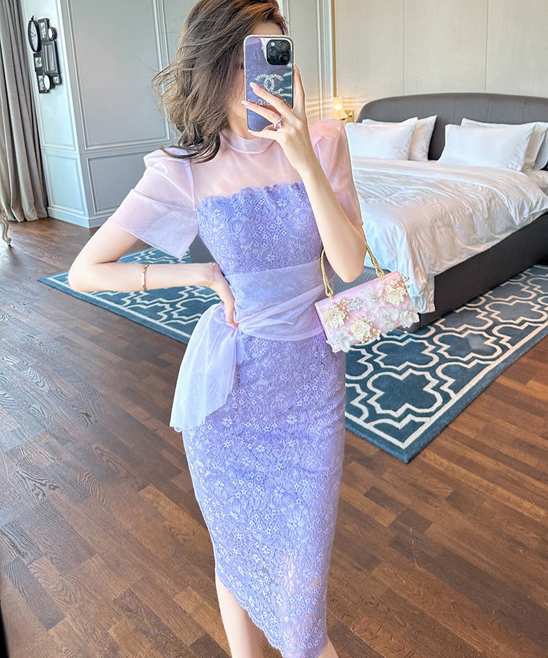 【手作り】膝丈ドレス キャバドレス 高品質 レース チュール エレガント 気質 XH2-JY20366