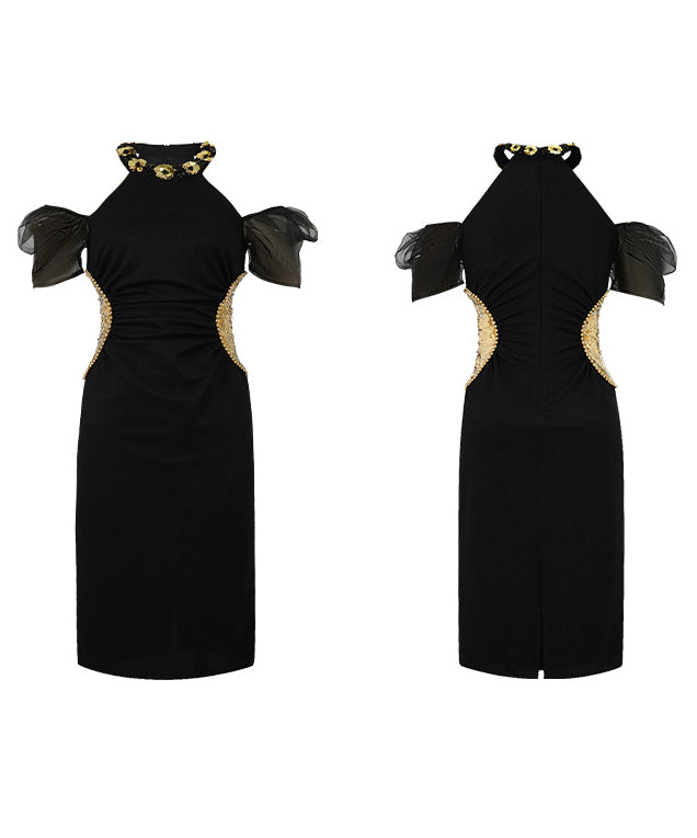 手作り 膝丈ドレス セクシー エレガント セレブ風 キラキラ party おしゃれ XH2-JY50949