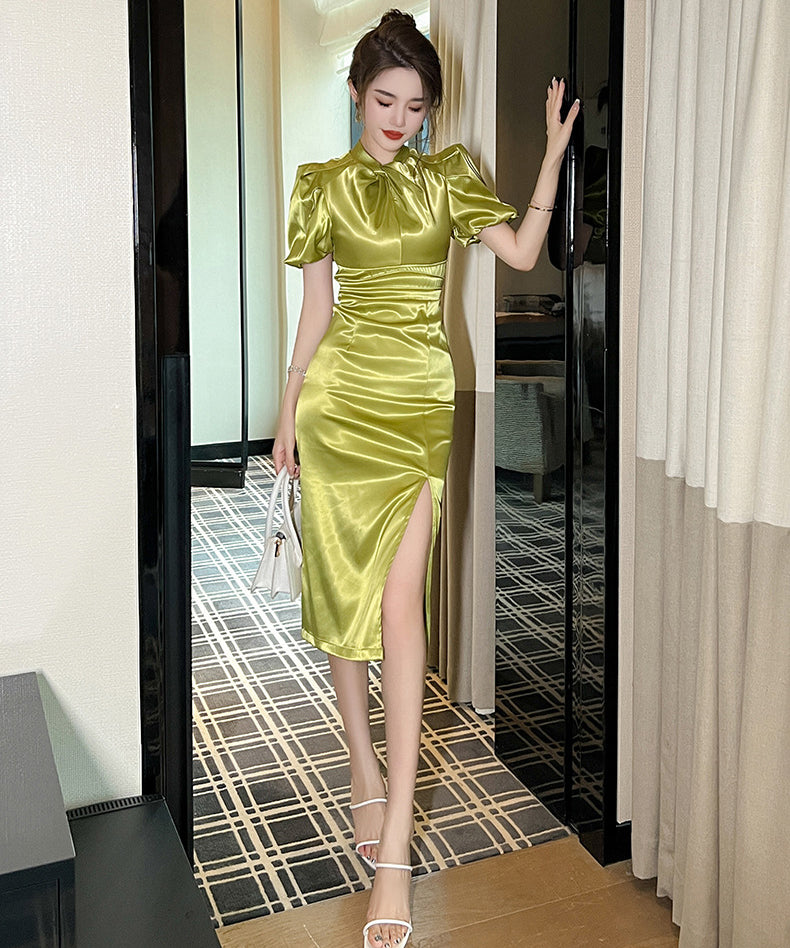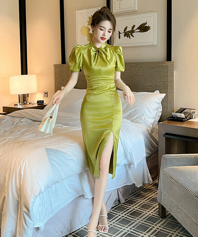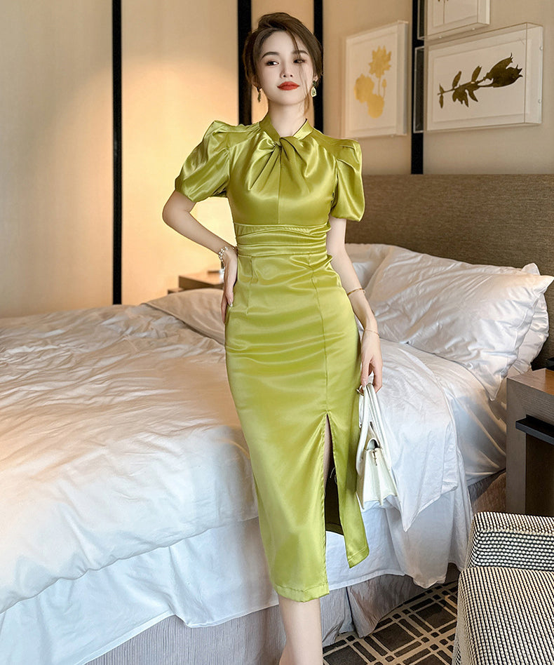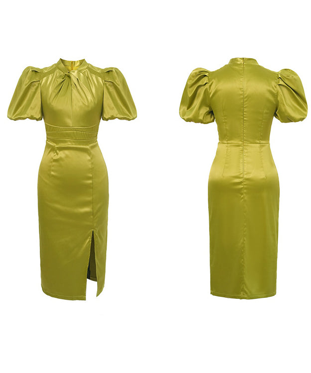 【手作り】膝丈ドレス 高品質 おしゃれ パフスリーブ エレガント 宴会 高級感 XH2-JY30068