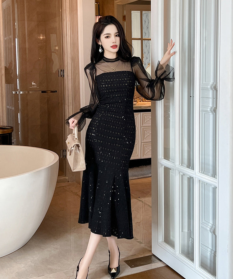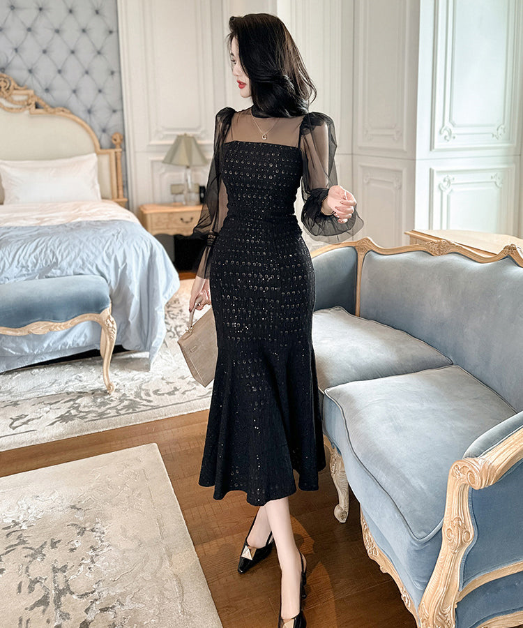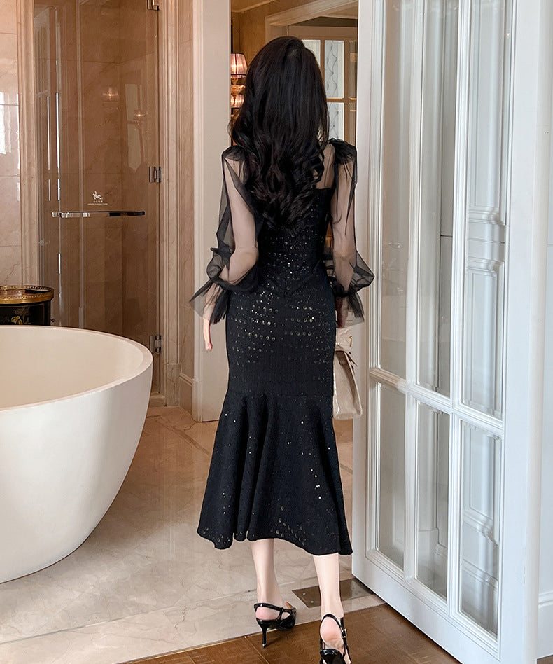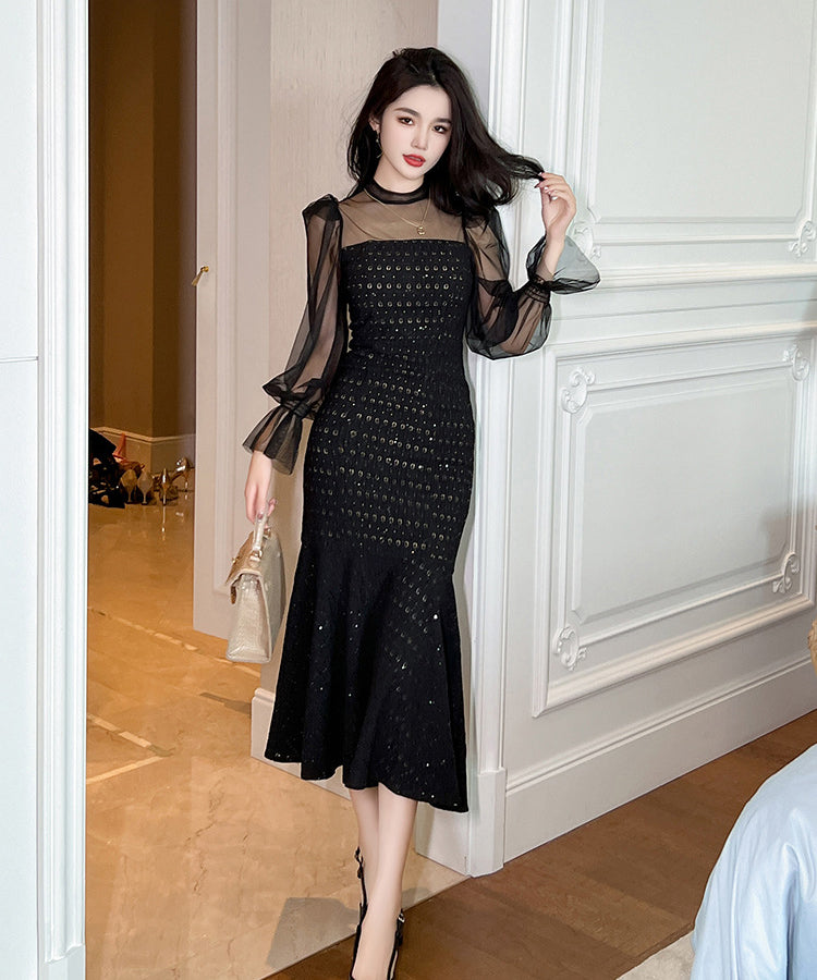 手作り 膝丈ドレス partyドレス チュール キラキラ エレガント 宴会 マーメイドドレス XH2-JY20760