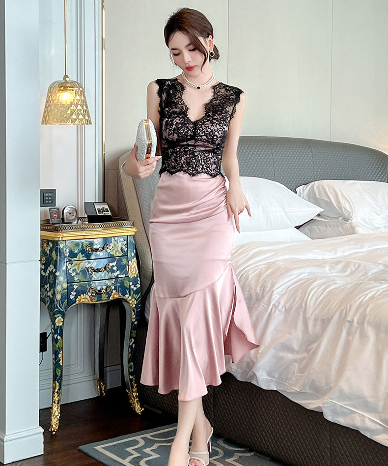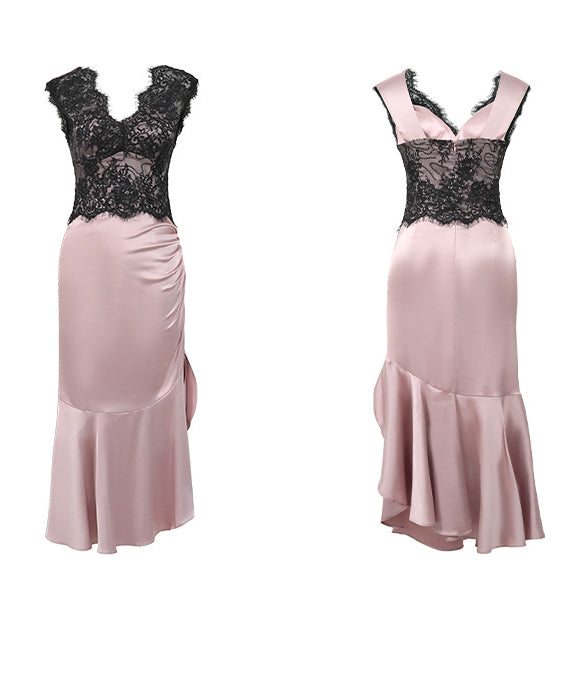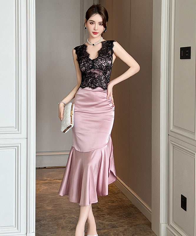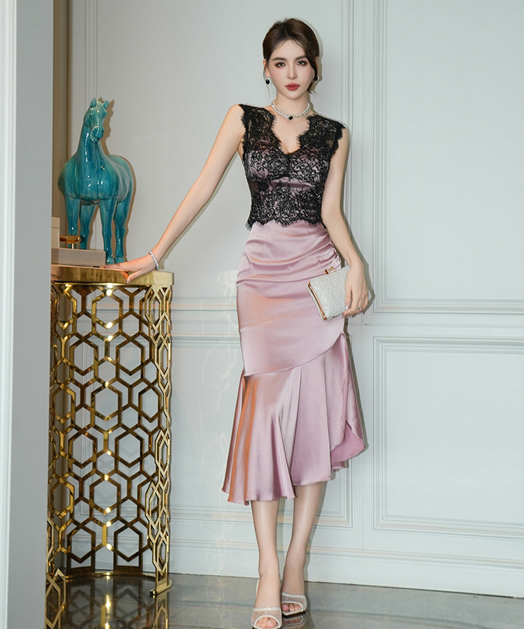 手作り 膝丈ドレス partyドレス 総レース エレガント 宴会 不規則 マーメイドドレス XH2-JY65027