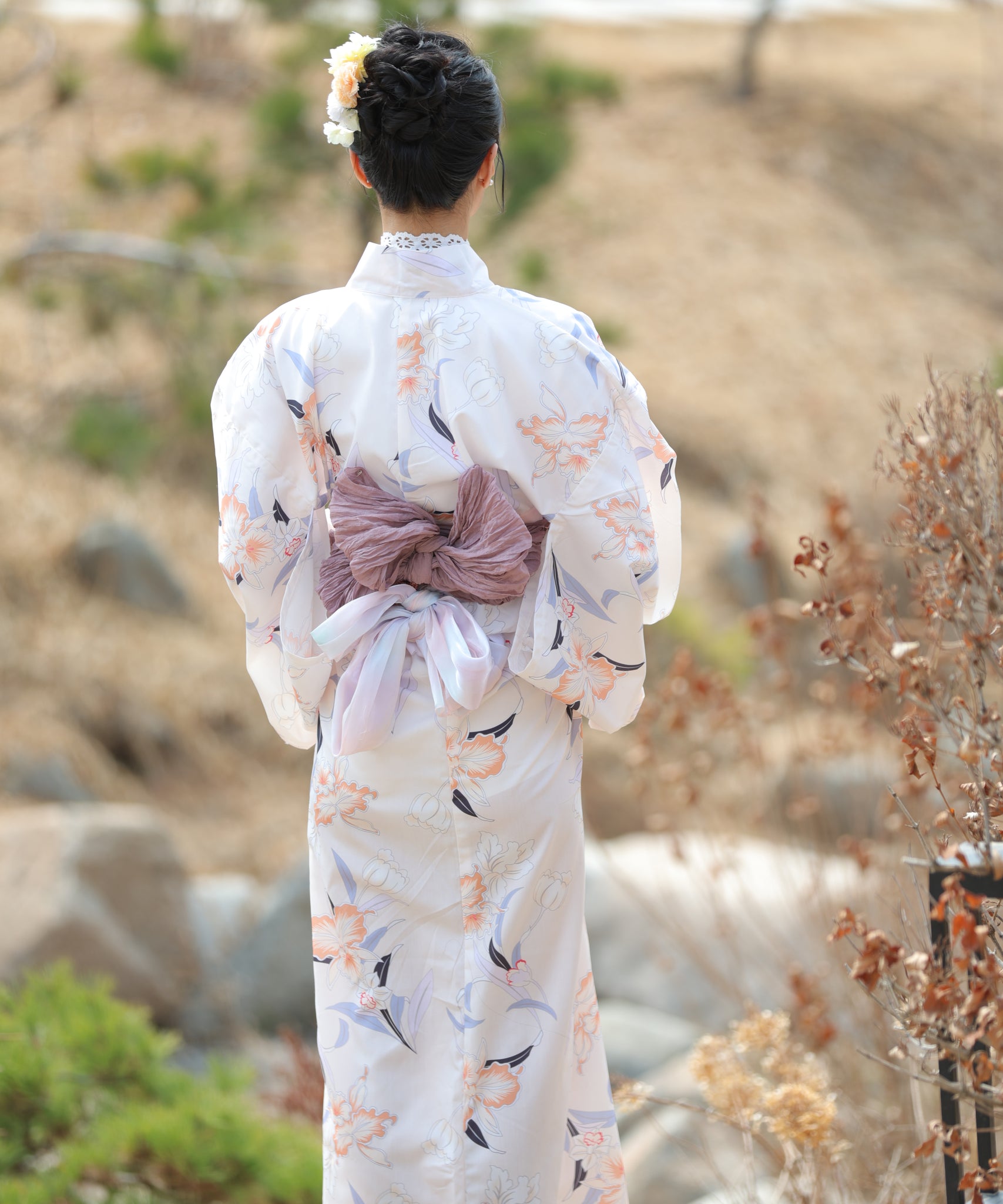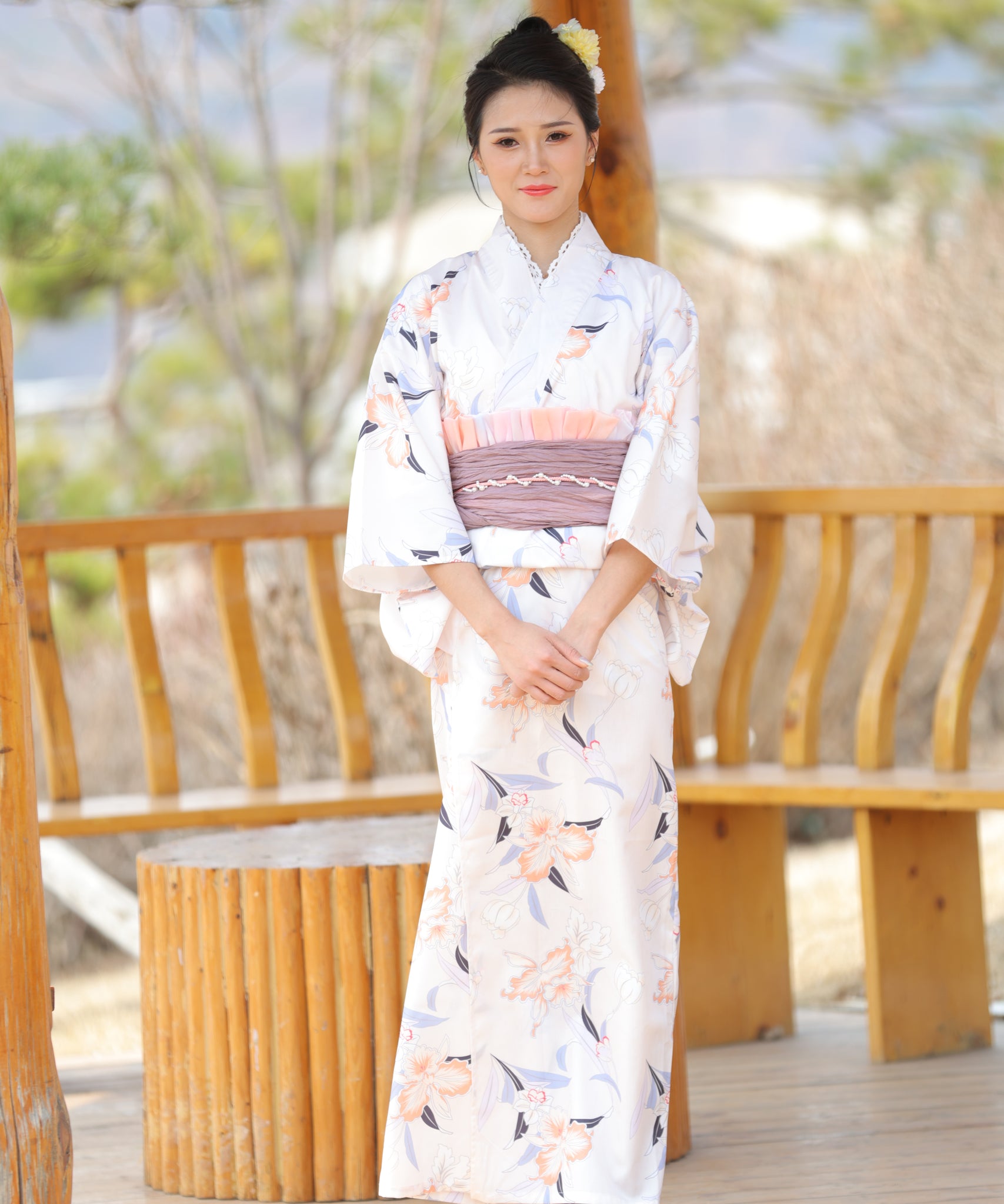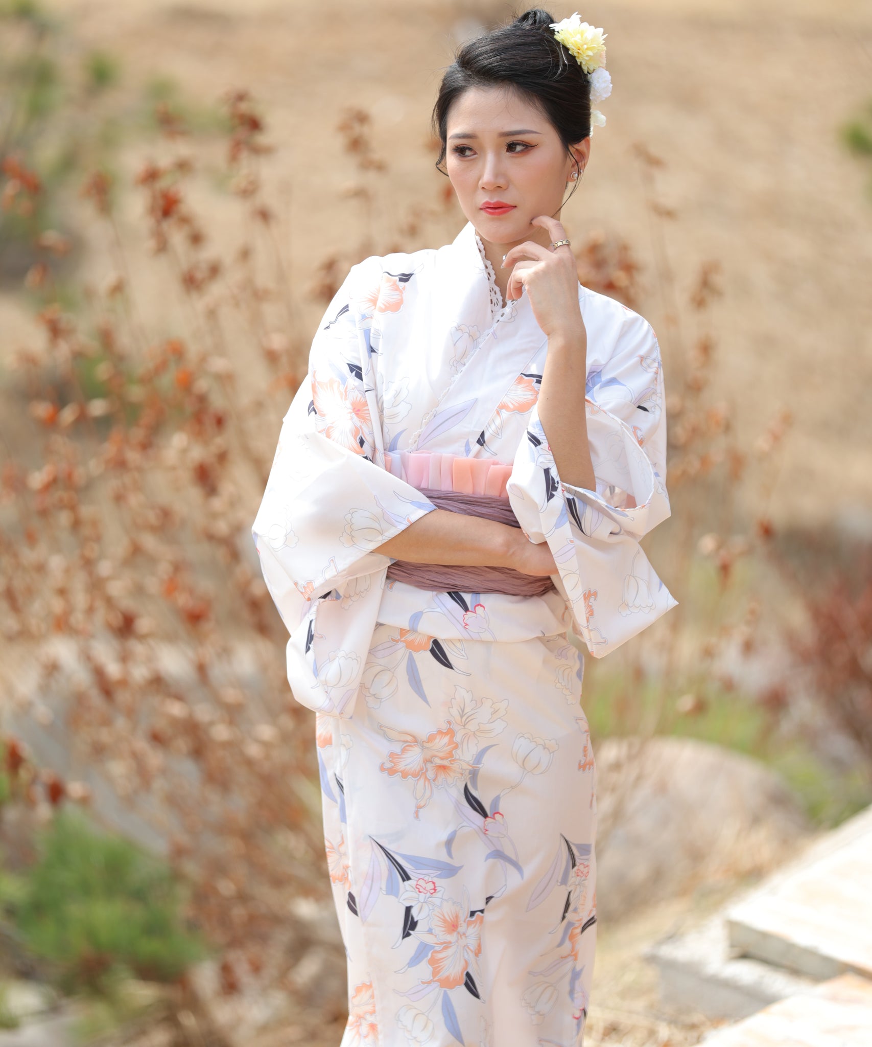 【日本即日発送】浴衣 浴衣セット 兵児帯 しわ兵児帯 伝統式浴衣 レディース 百合柄 草花柄 2024YTK-006