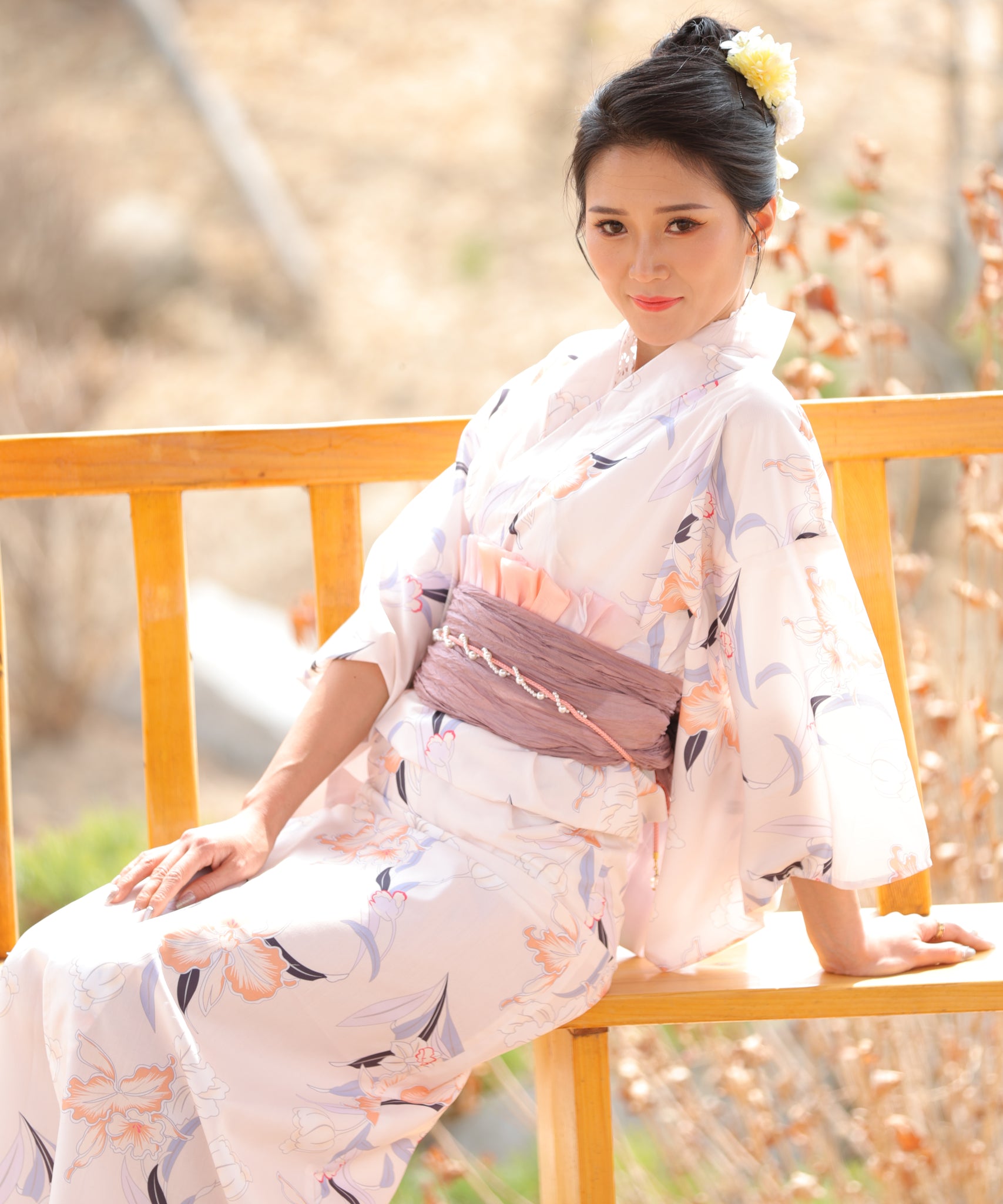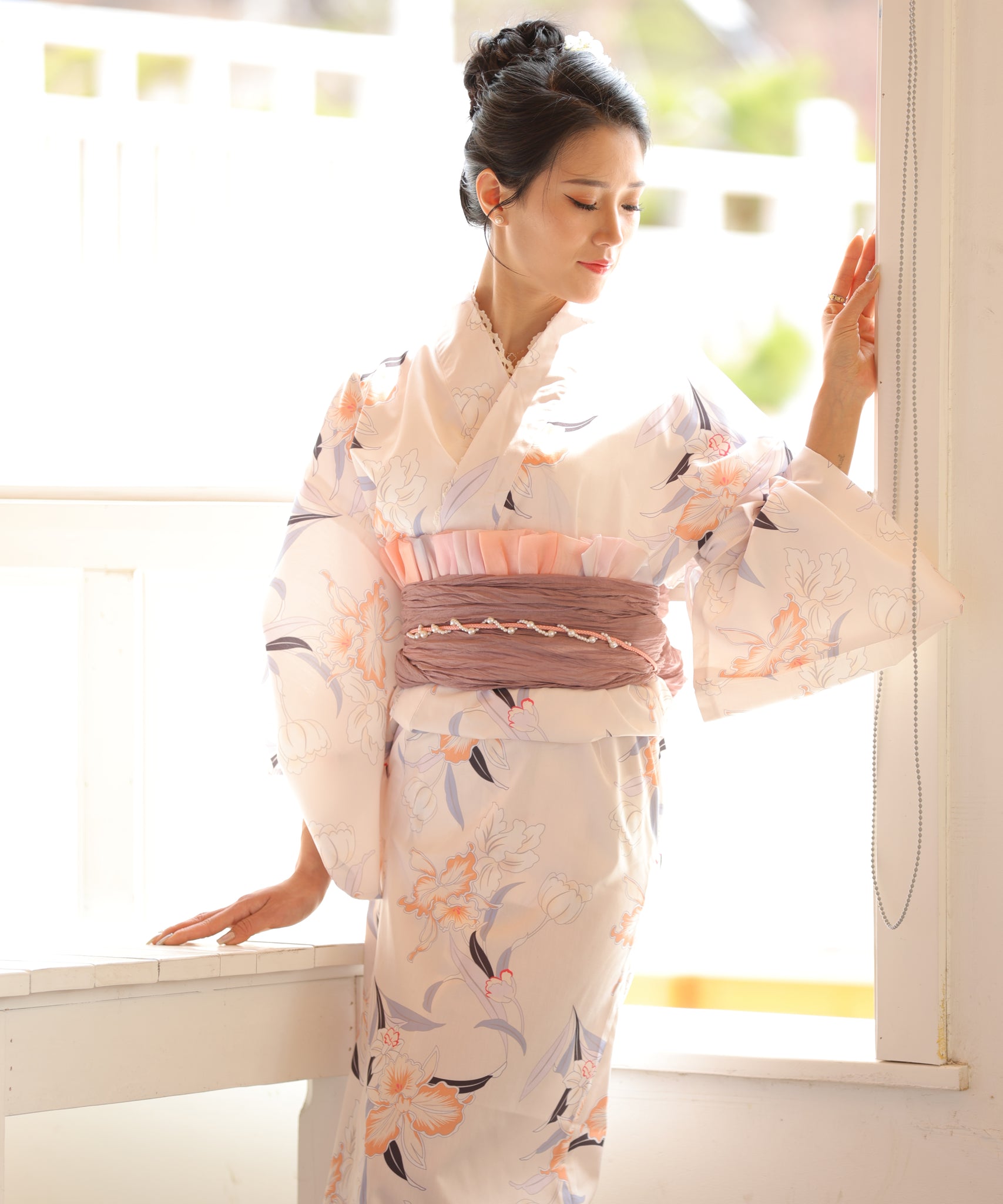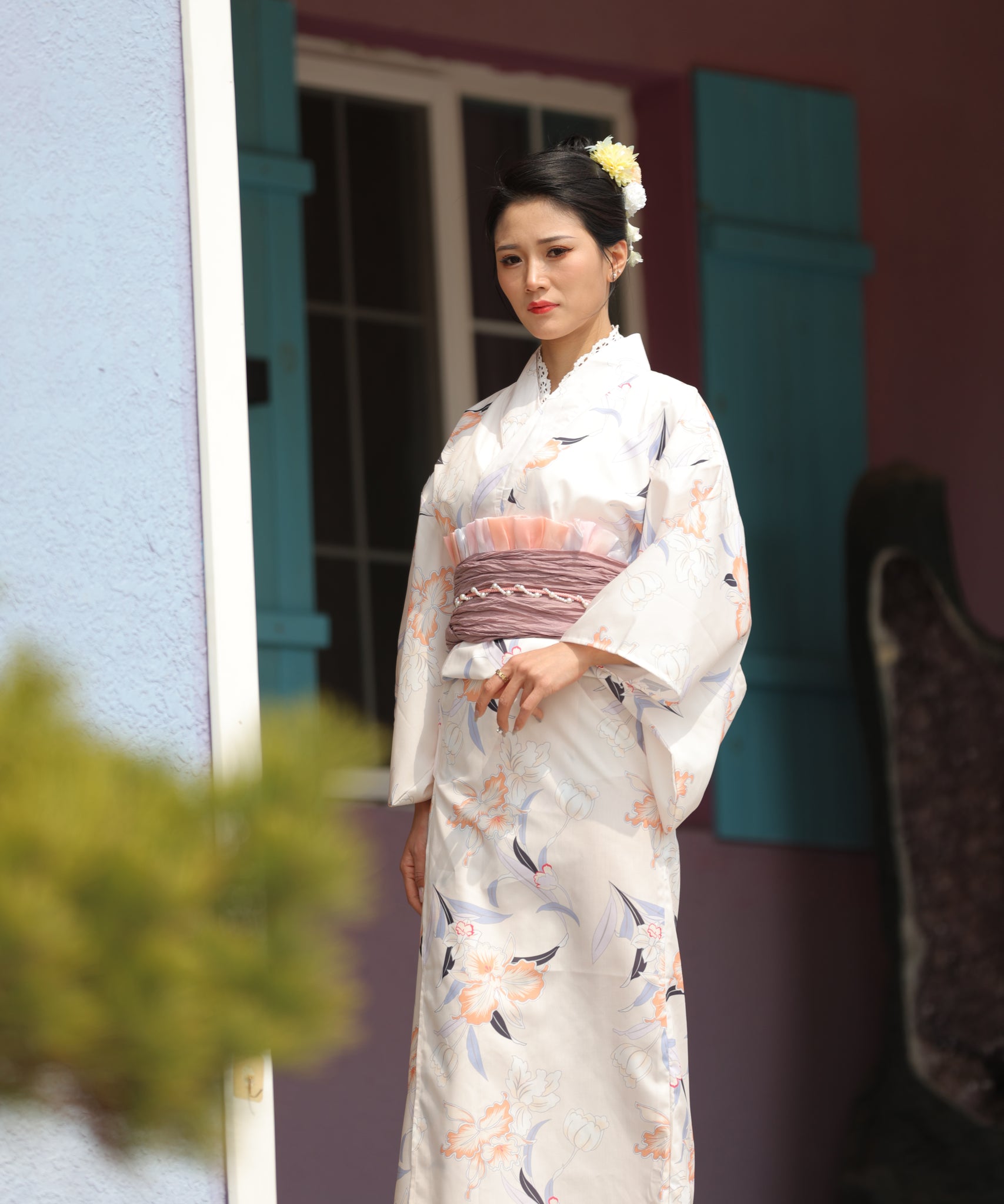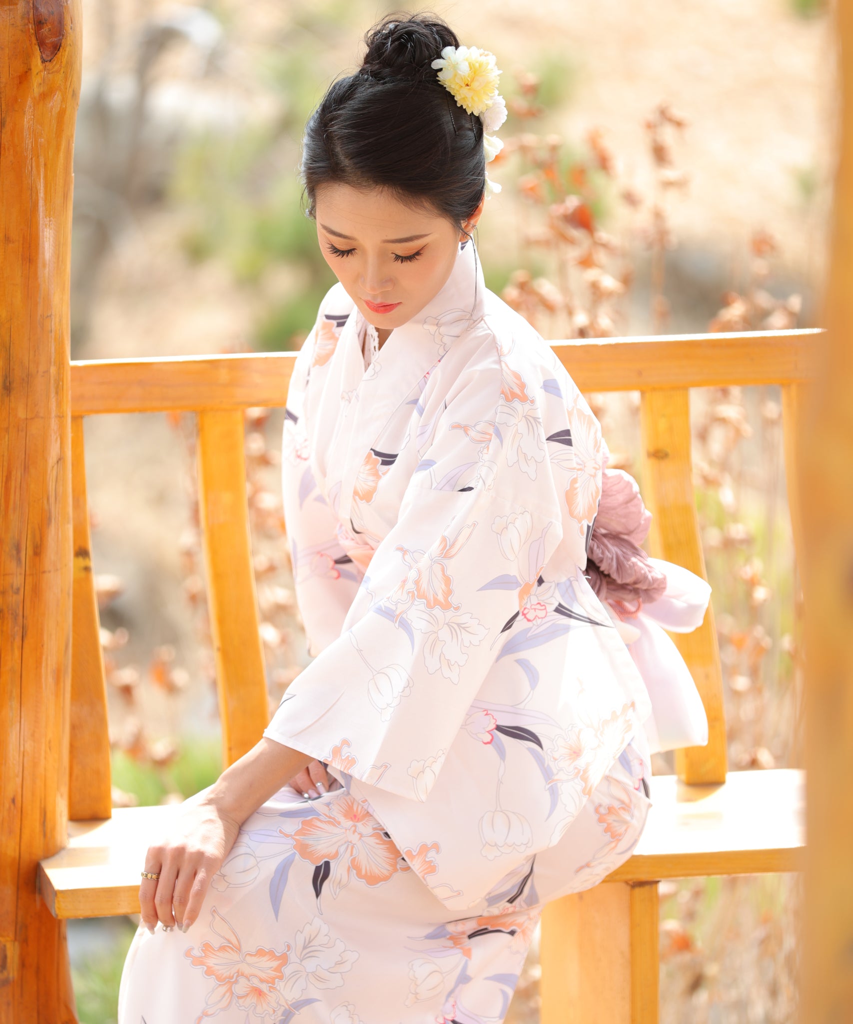 【日本即日発送】浴衣 浴衣セット 兵児帯 しわ兵児帯 伝統式浴衣 レディース 百合柄 草花柄 2024YTK-006
