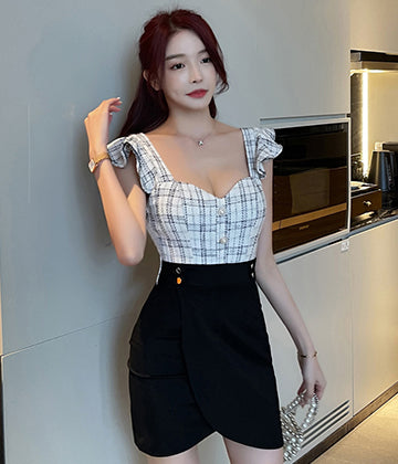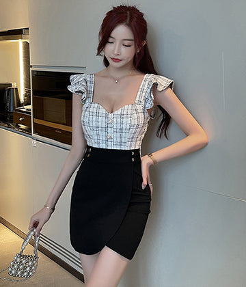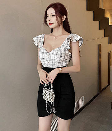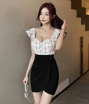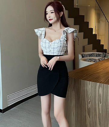 格子縞 キャバドレス ミニドレス セクシー 体型カバー 少女感 新作 LT2-YM8711