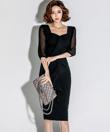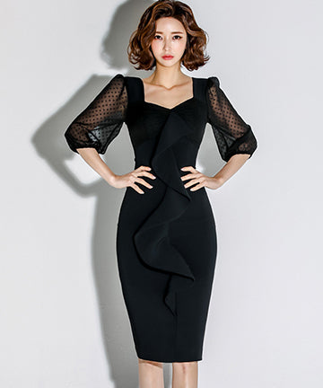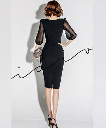 水玉柄 チュール 肌見せ キャバドレス ロングドレス 新作 LT2-ZED886315BH506